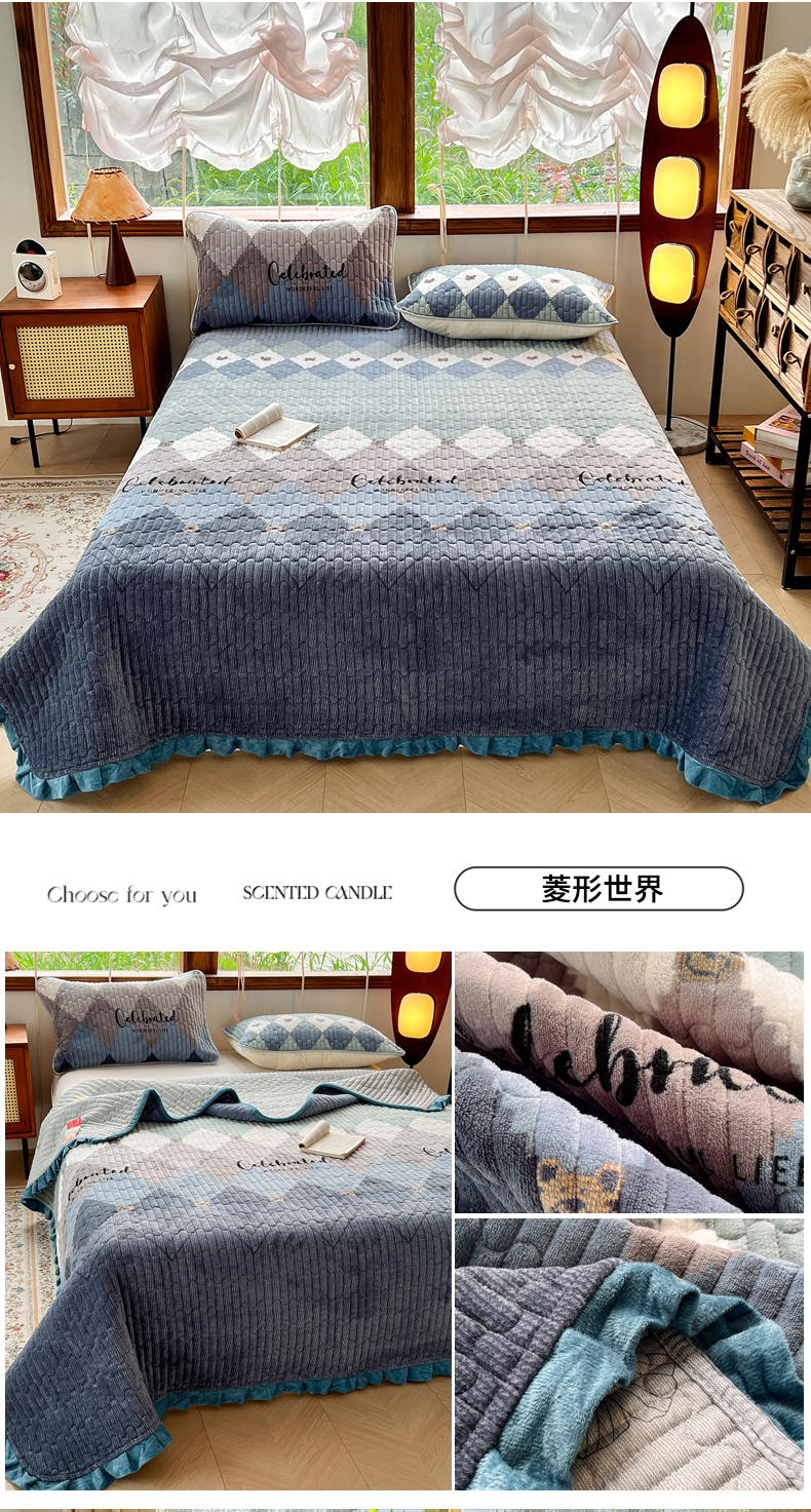商品名称:梵克保罗 2025新款A类牛奶绒夹棉花边韩版印花床盖三件套加厚保暖多功能单床盖 豹纹KT