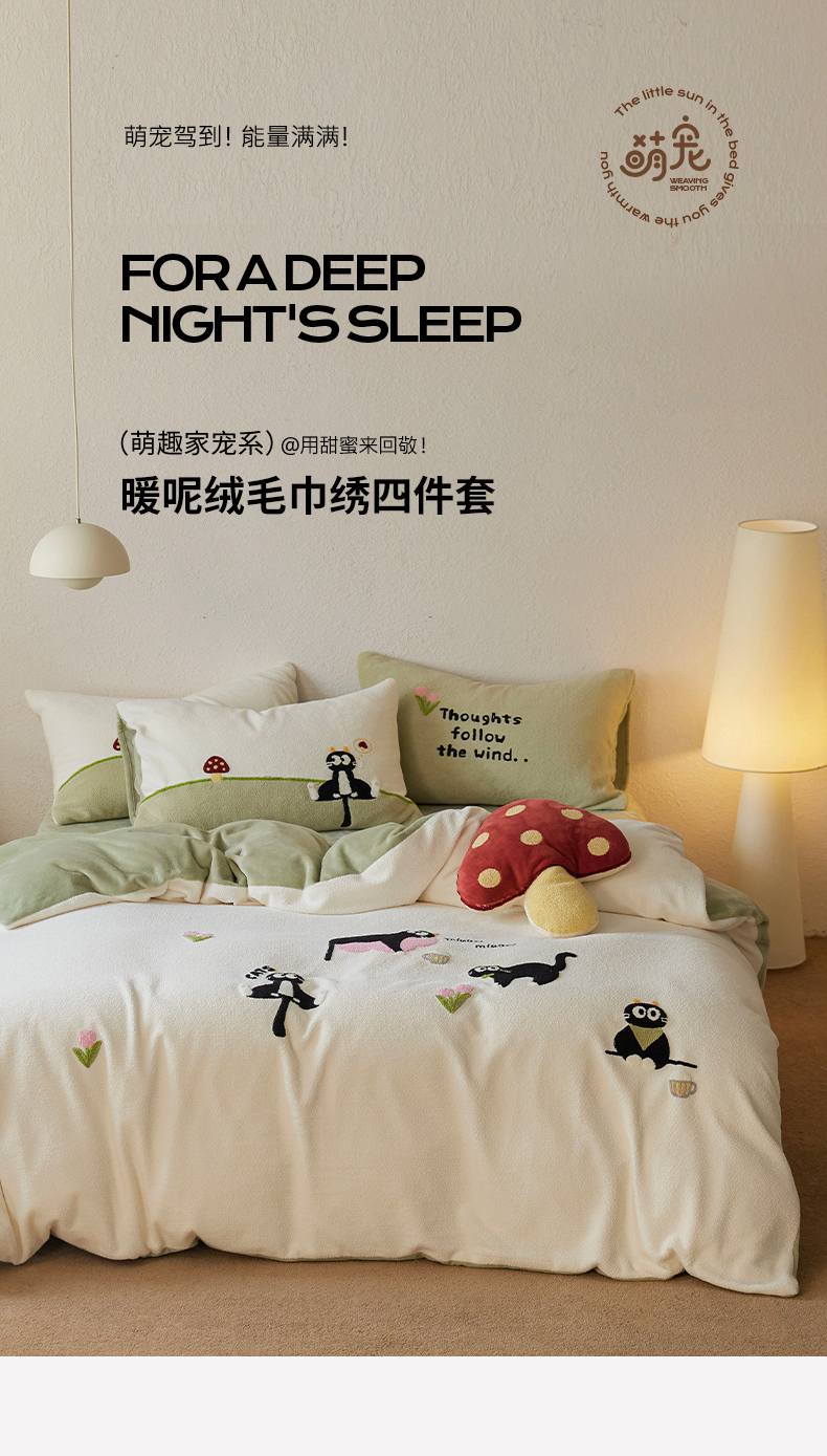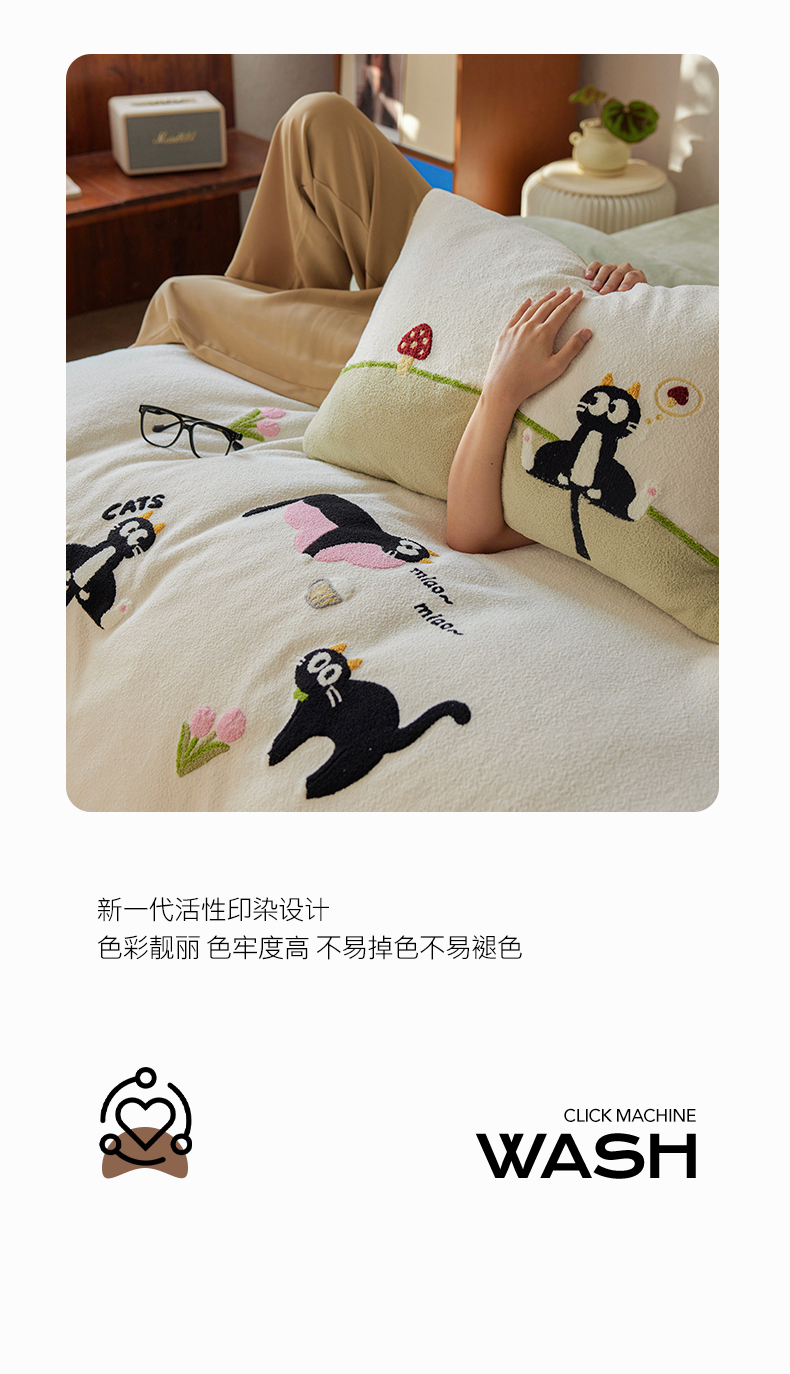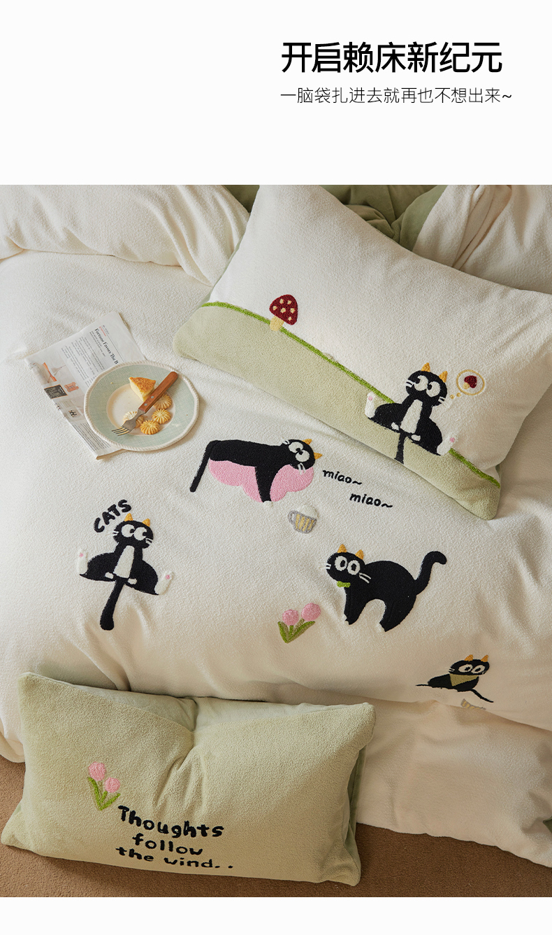 当前位置: 91家纺网 > 商品网购 > 床品套件 > 四件套 > 其它四件套 > 安莱生活 2025新款暖呢绒毛巾绣四件套(萌趣家宠系)-风格1 炸毛小黑猫-奶白