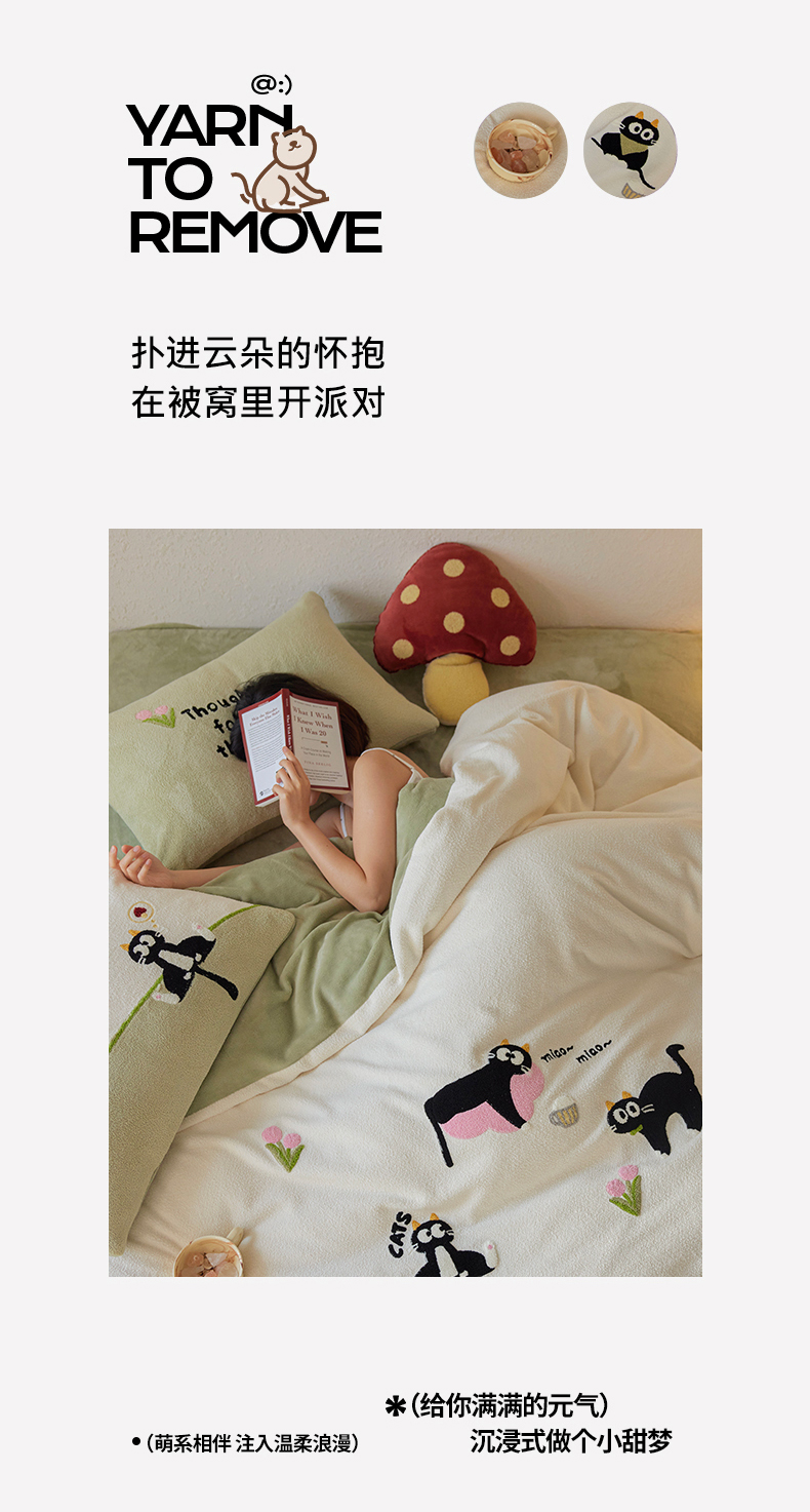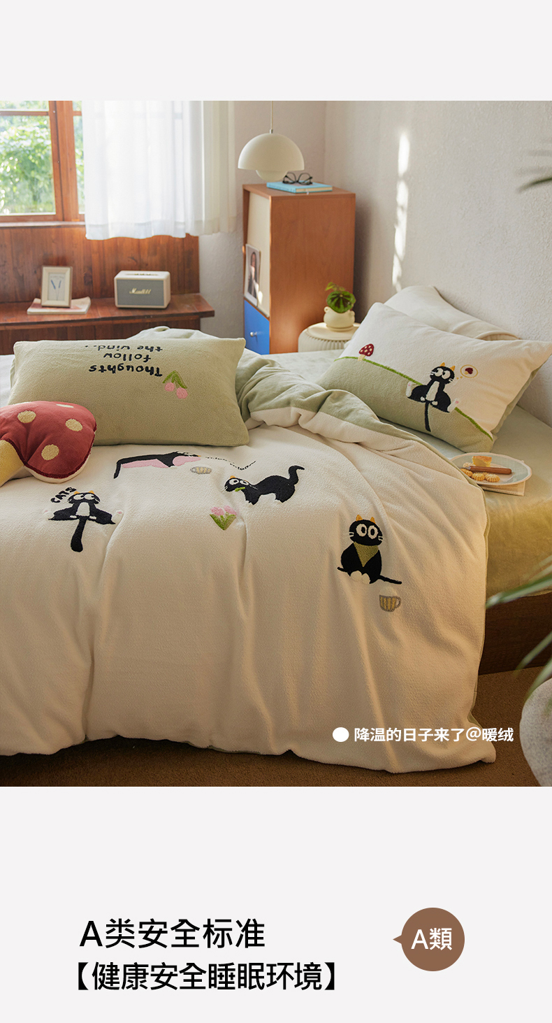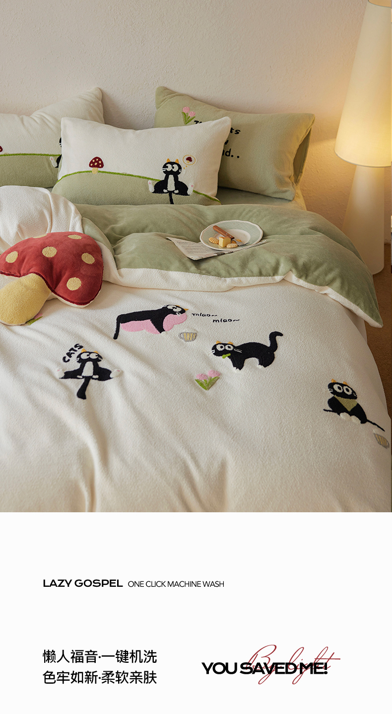 当前位置: 91家纺网 > 商品网购 > 床品套件 > 四件套 > 其它四件套 > 安莱生活 2025新款暖呢绒毛巾绣四件套(萌趣家宠系)-风格1 炸毛小黑猫-奶白
