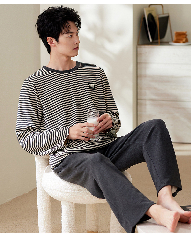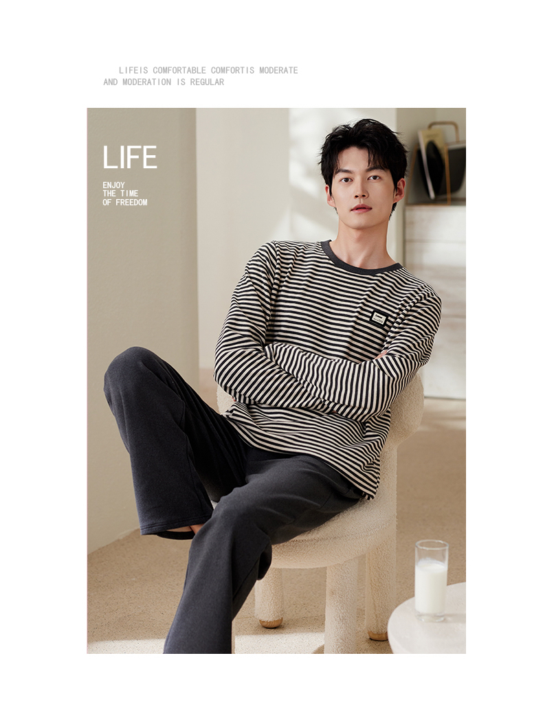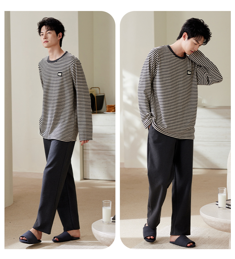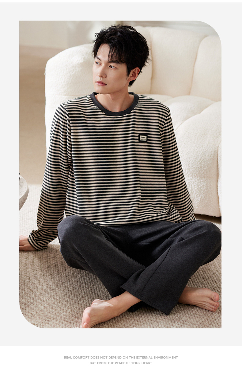 商品名称:(总)洛兰沙家居馆 2025保暖睡衣男士冬季新款长袖长裤开衫翻领男款时尚家居服套