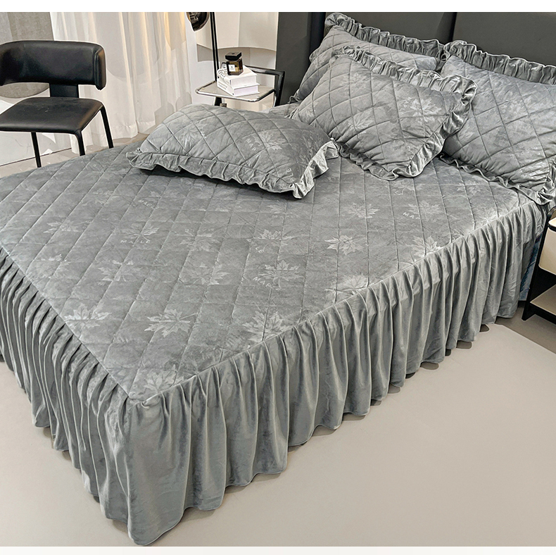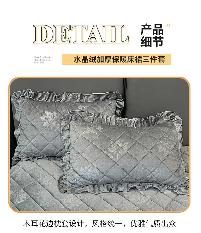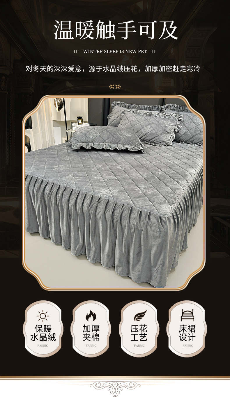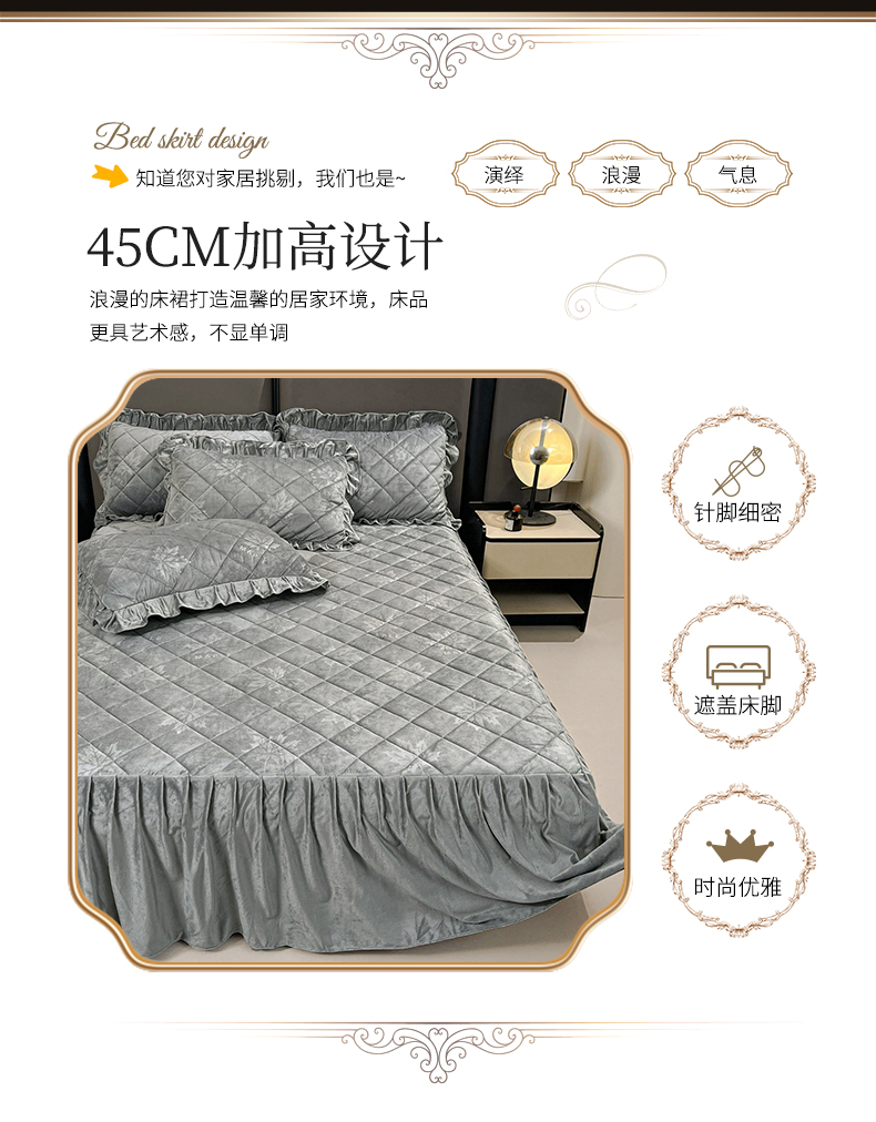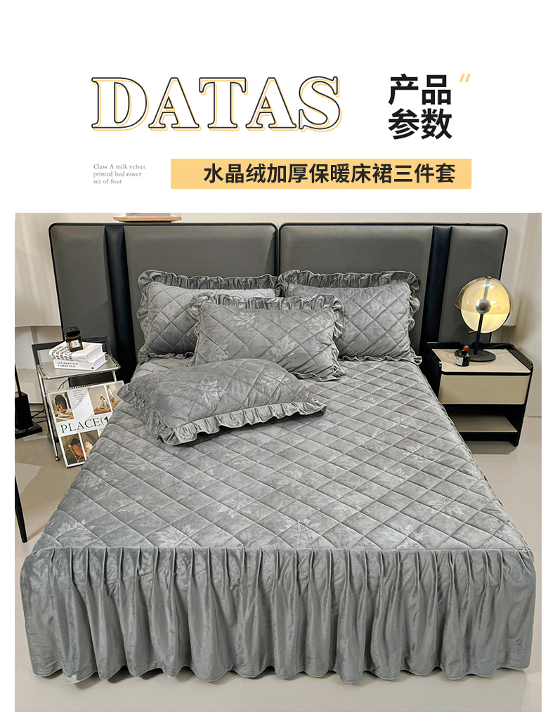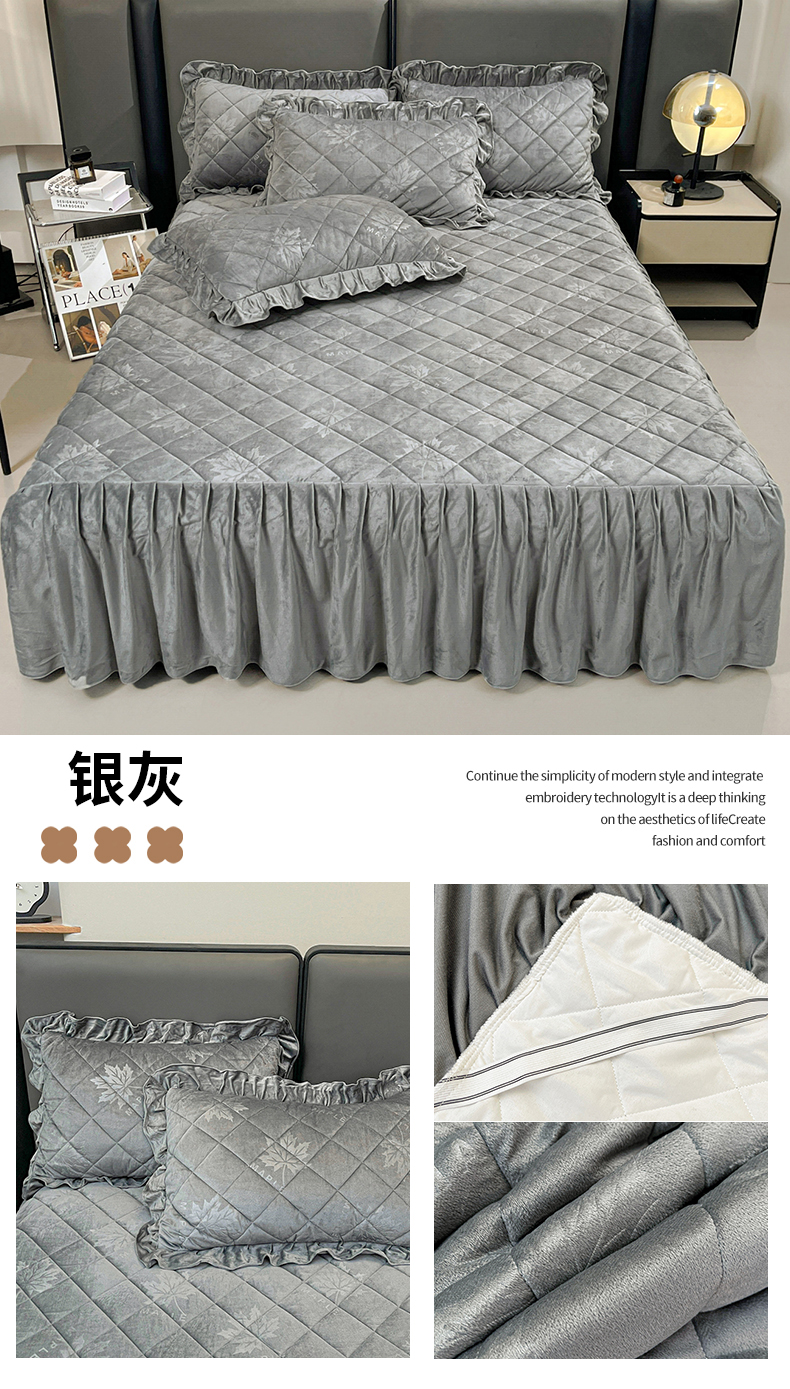 当前位置: 91家纺网 > 商品网购 > 床品套件 > 三件套 > 屹成家纺 2025新款压花水晶绒床裙三件套 (床裙单件不低于95元起) 银灰