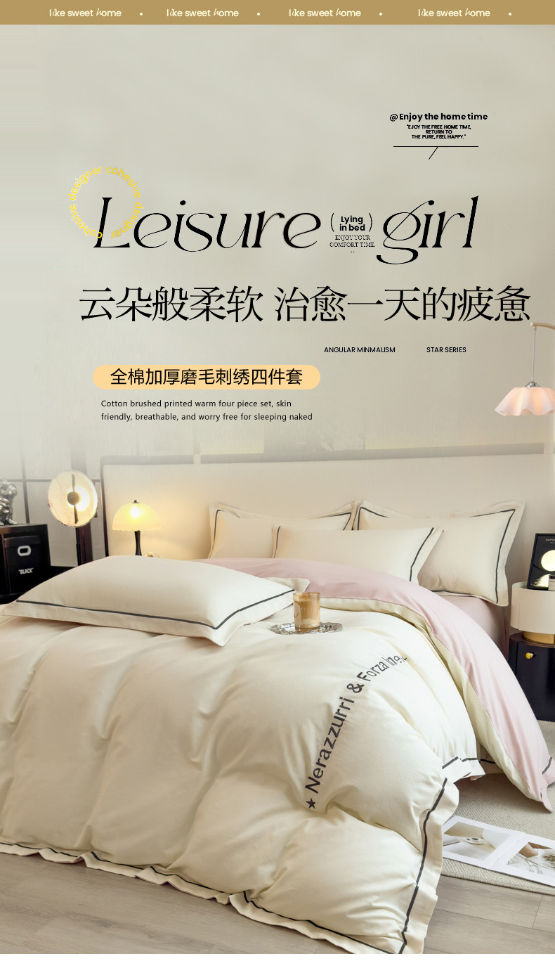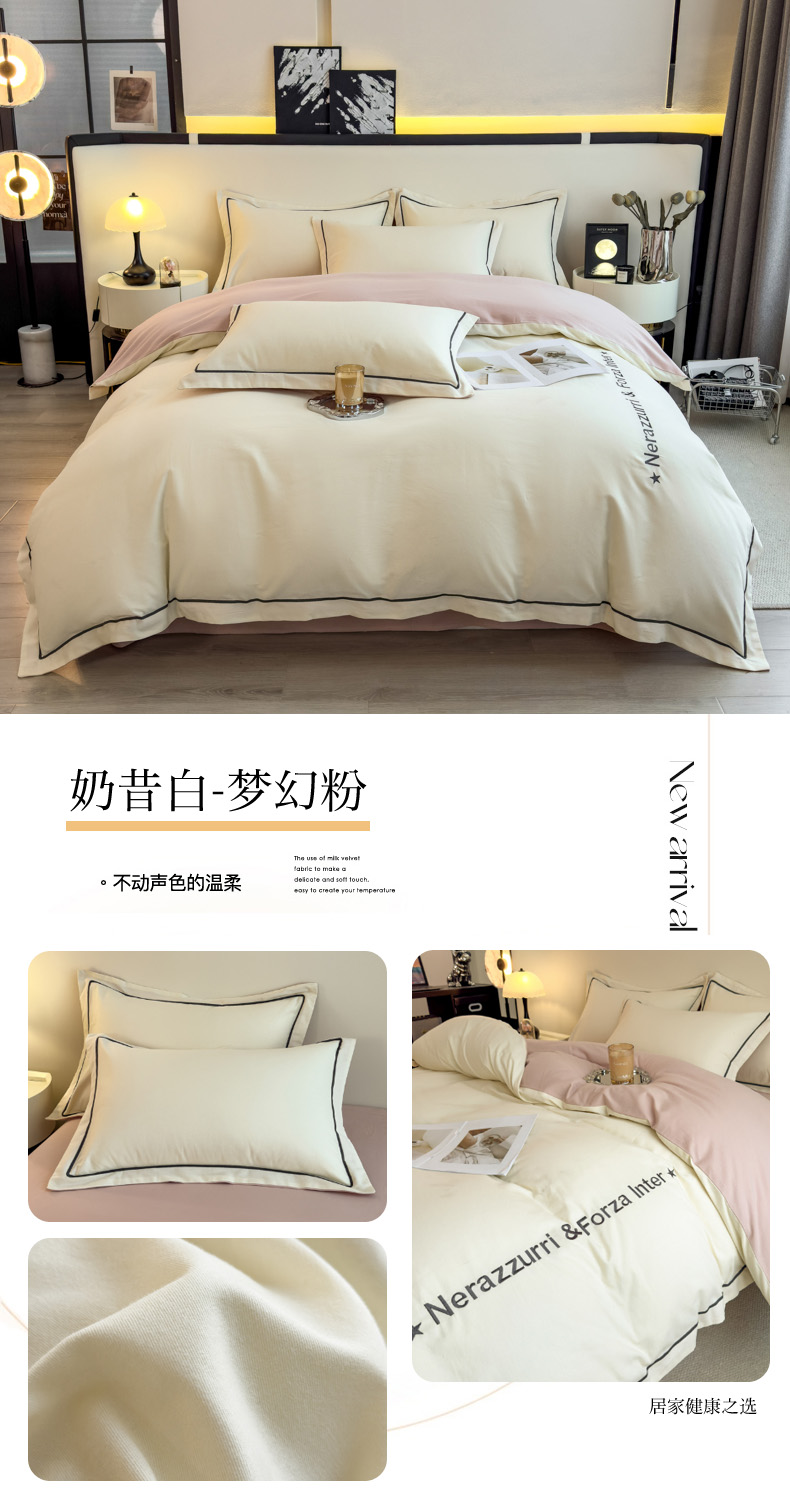 当前位置: 91家纺网 > 商品网购 > 床品套件 > 四件套 > 全棉普通四件套 > 印季家纺 2025新款绣花一字绣全棉纯棉加厚磨毛四件套 奶昔白-梦幻粉