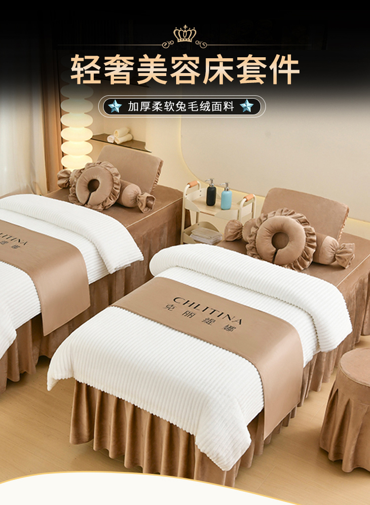 商品名称:(总)诗薇娅 2025新款加厚兔毛绒美容床罩 美容床罩四件套