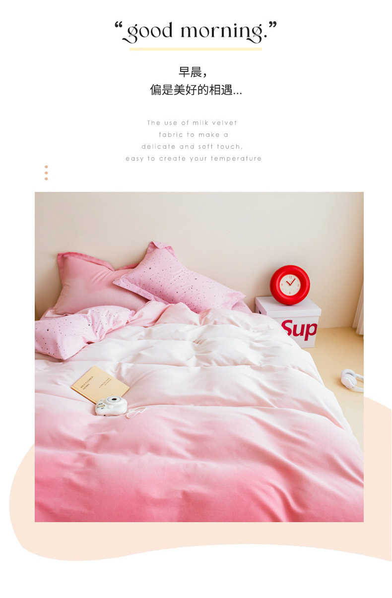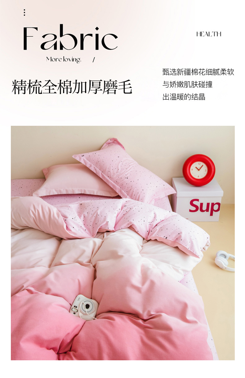 当前位置: 91家纺网 > 商品网购 > 床品套件 > 四件套 > 全棉普通四件套 > 印季家纺 2025新款全棉纯棉加厚渐变混纺磨毛四件套-过江寒 过江寒-粉