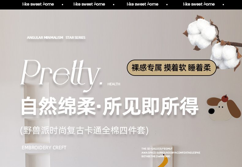 (总)锦觅家纺 2025新款卡通小清新毛巾绣全棉纯棉四件套(大版定位花型),奔跑的狗狗,丛林趣事,蝶恋花(粉紫),蝶恋花(米粉),可爱熊猫,奶油兔兔,嬉戏猫咪,小宇航员