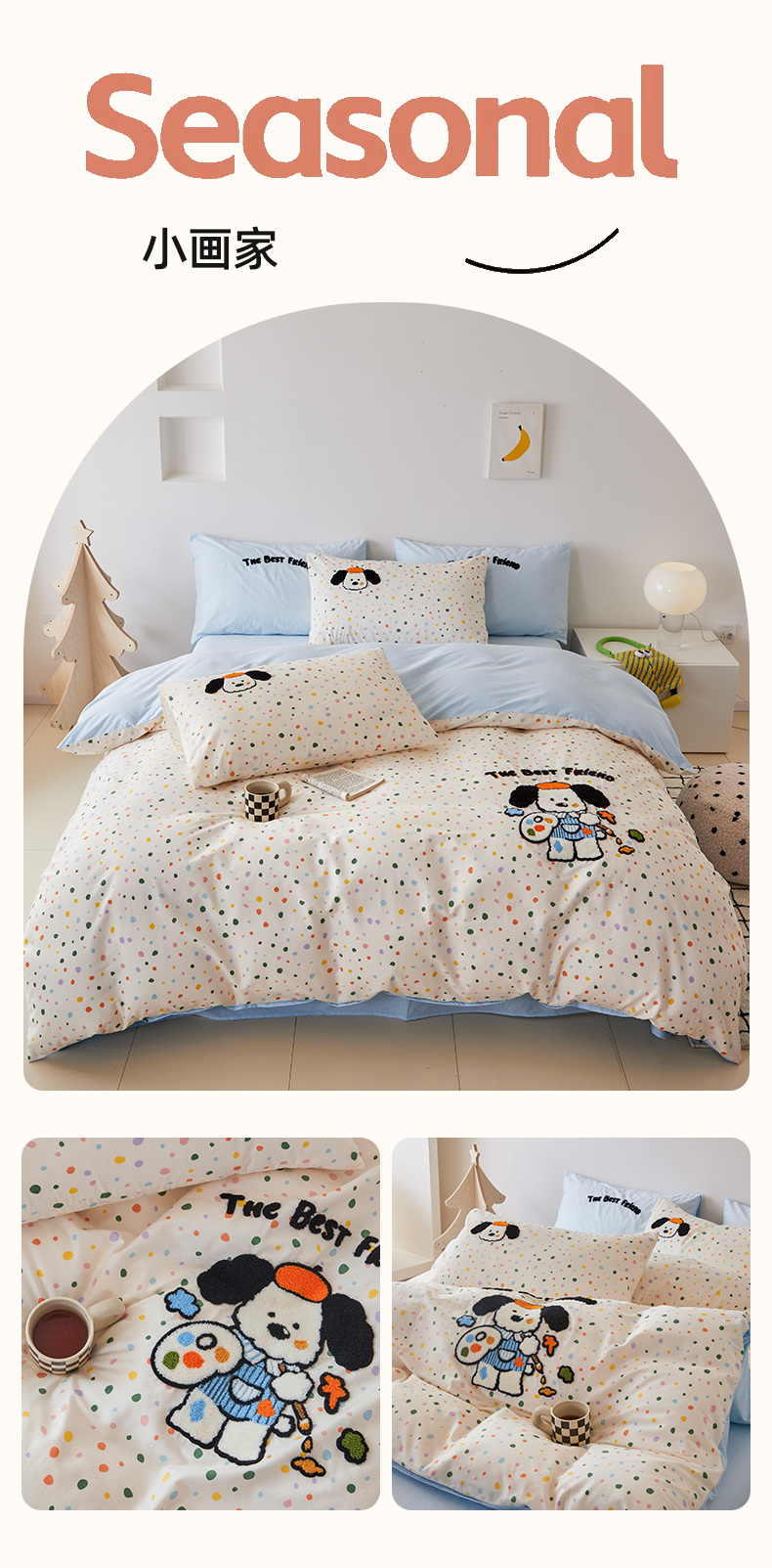 (总)锦觅 2025秋冬A类数码印花全棉纯棉磨毛绣花保暖四件套,欢乐巴拉,繁花似锦,欢乐小熊,可爱女孩,奶油小熊,贪睡兔兔,喜气洋洋,星河万里,熊猫宝贝