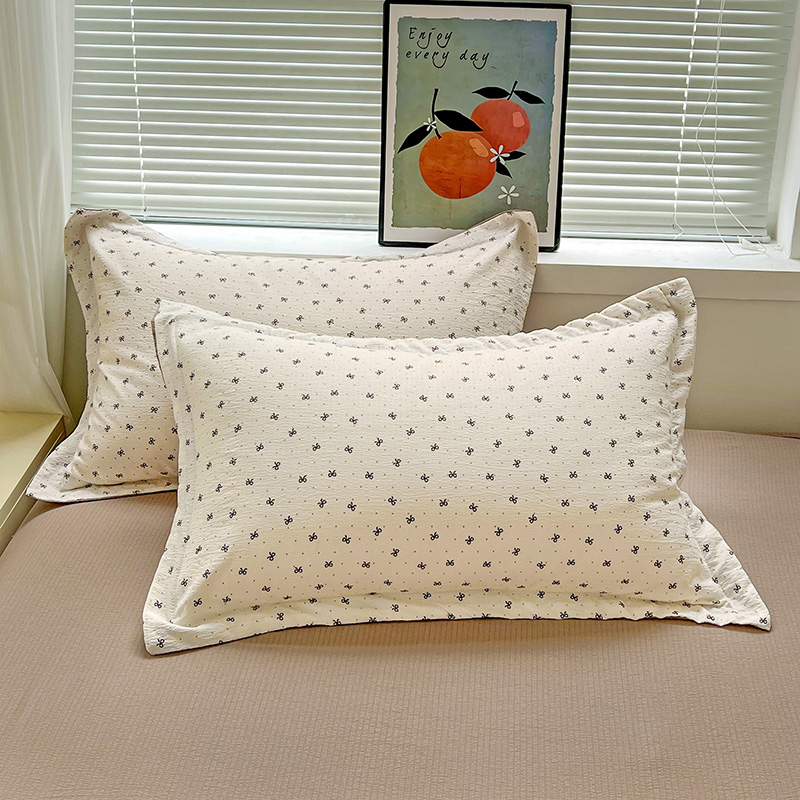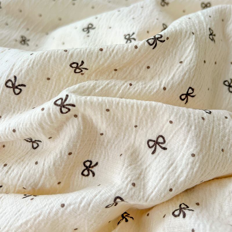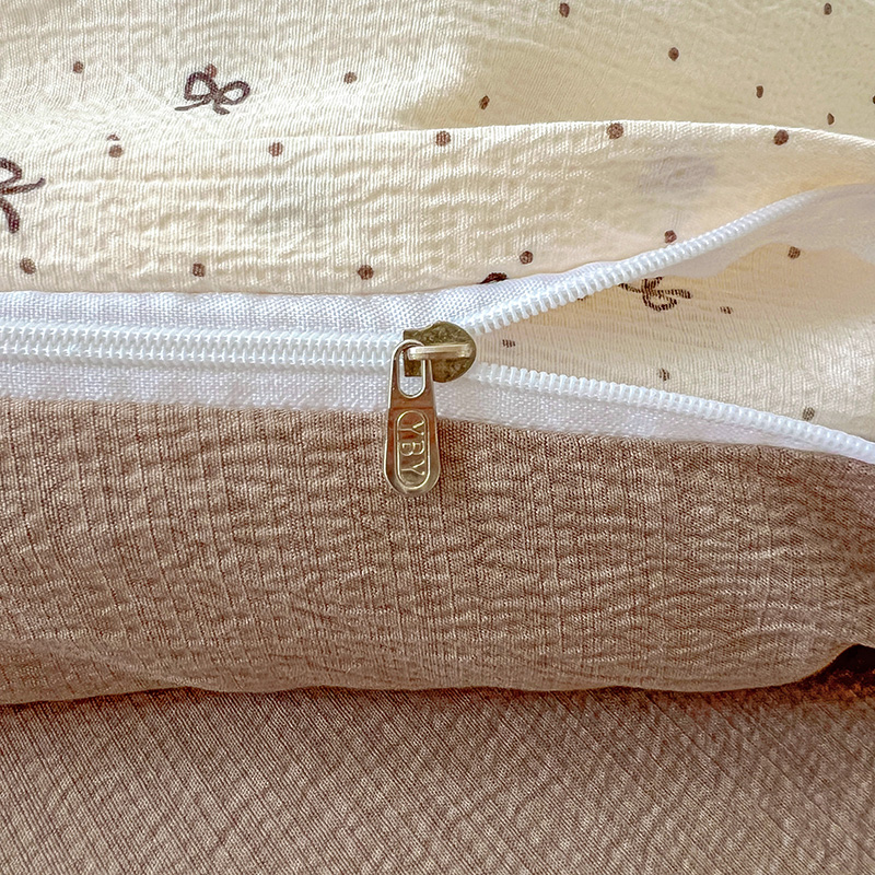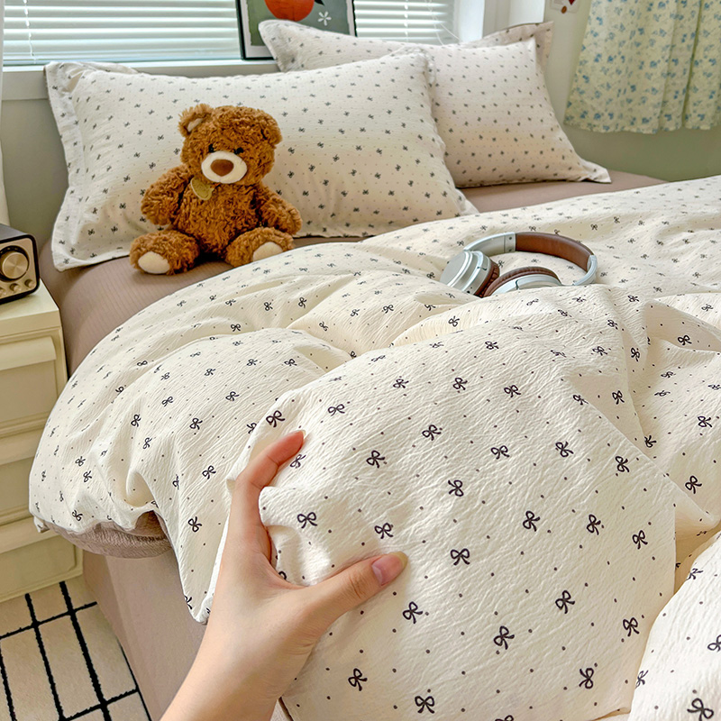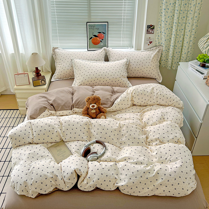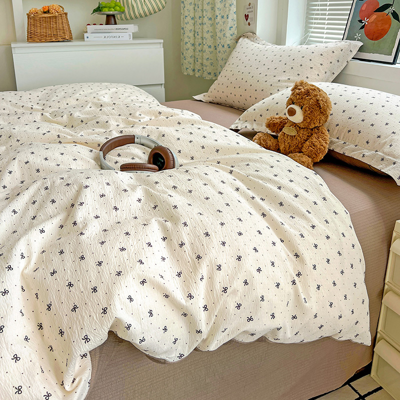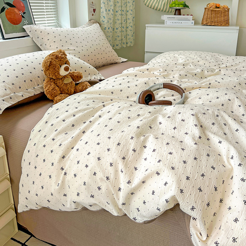 一比一 2025新款古法水洗棉小布袋高克重云柔棉四件套 蝴蝶结点点- 咖