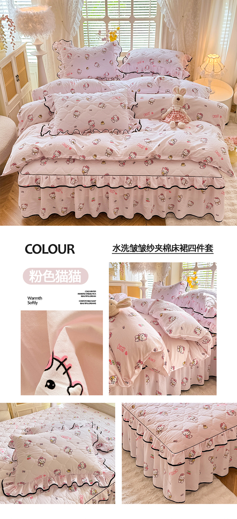 当前位置: 91家纺网 > 商品网购 > 床品套件 > 四件套 > 其它四件套 > 优家居 2025新品水洗棉夹棉床裙四件套韩版糯糯棉水洗皱皱纱床罩被套直播爆款 粉雾结语