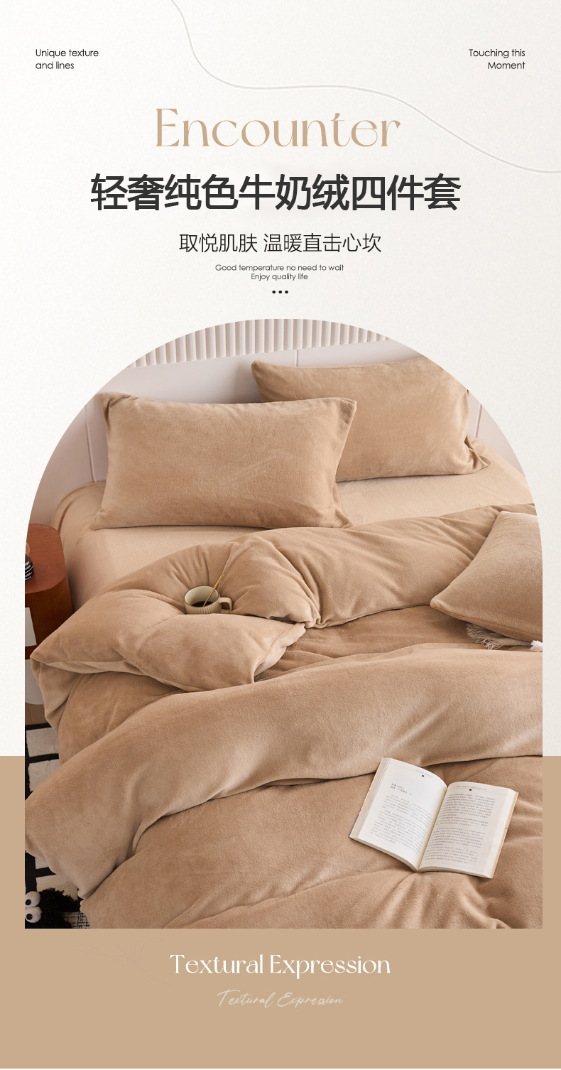 当前位置: 91家纺网 > 商品网购 > 床品套件 > 四件套 > 牛奶绒四件套 > 乐居家纺 2025新款200克重纯色单面绒牛奶绒四件套 奶油驼