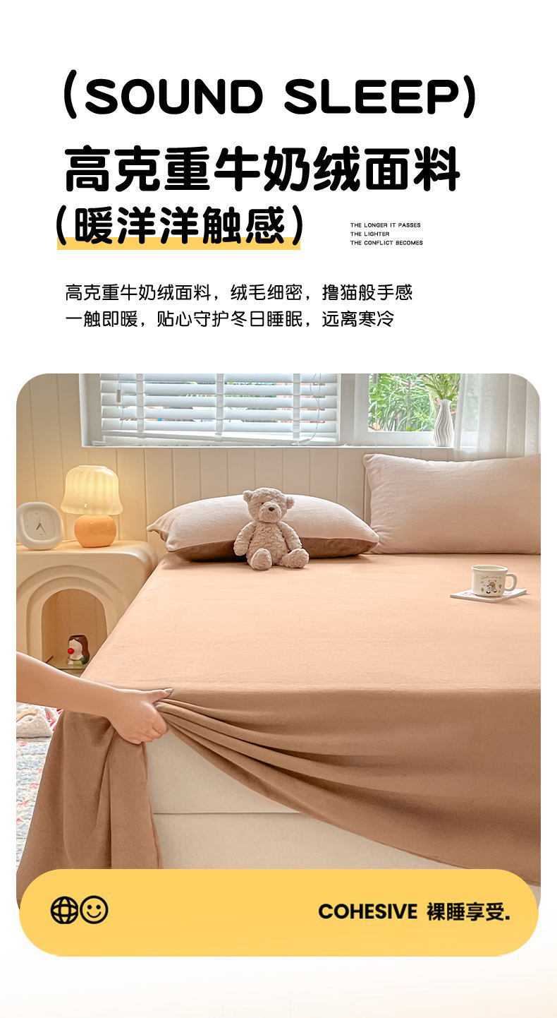 (总)仔仔熊 2025新款牛奶绒单床单床单单件,咖,绿,蓝,粉,灰,橙