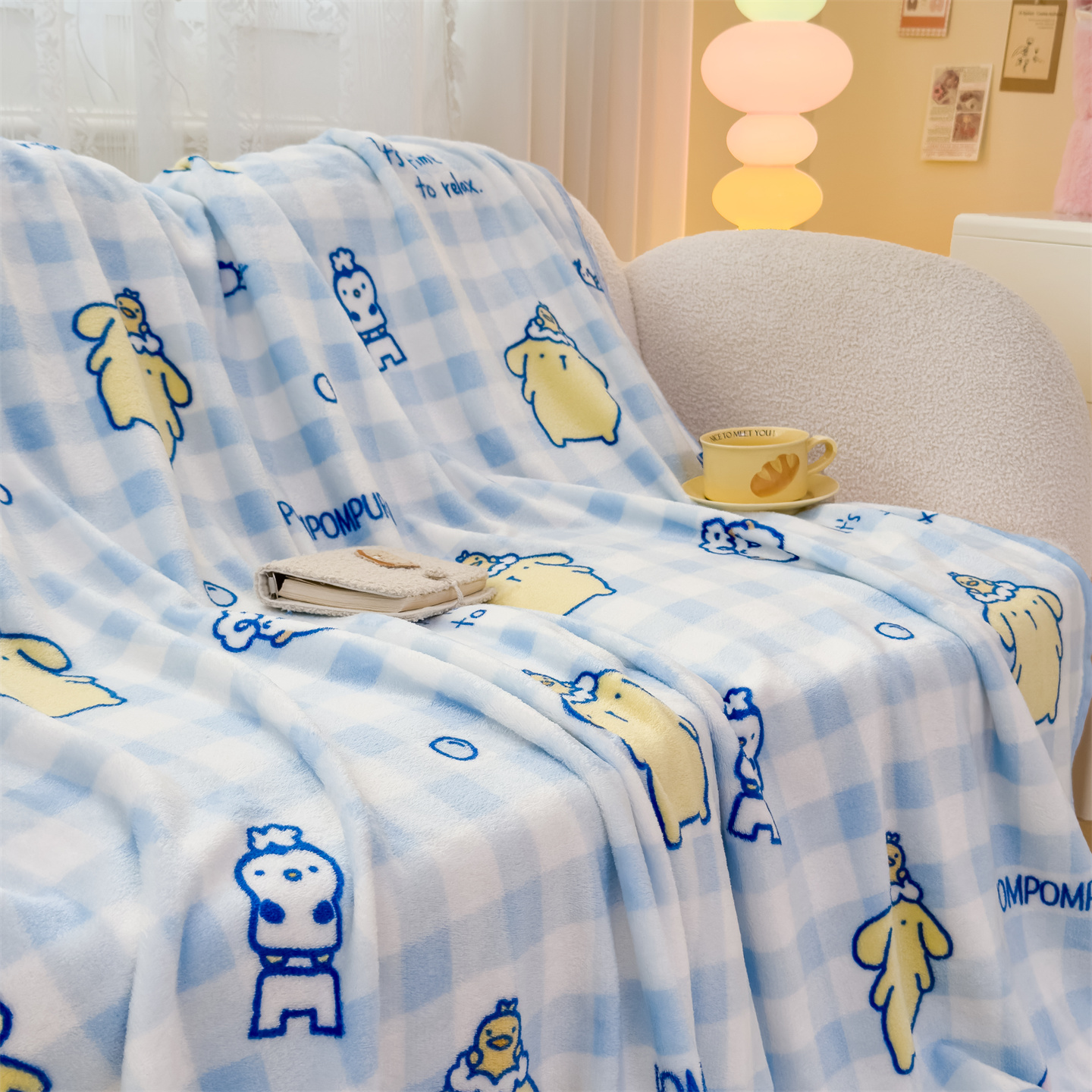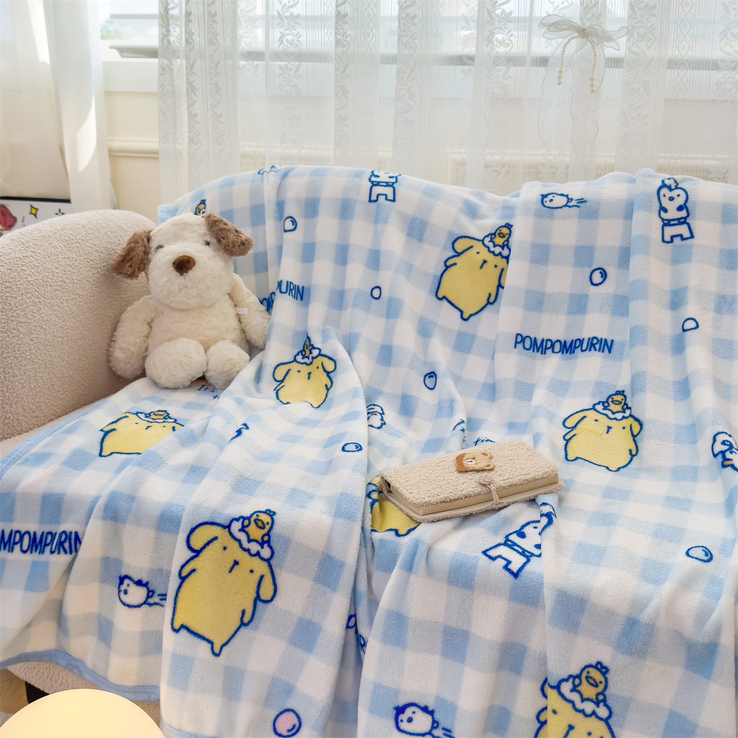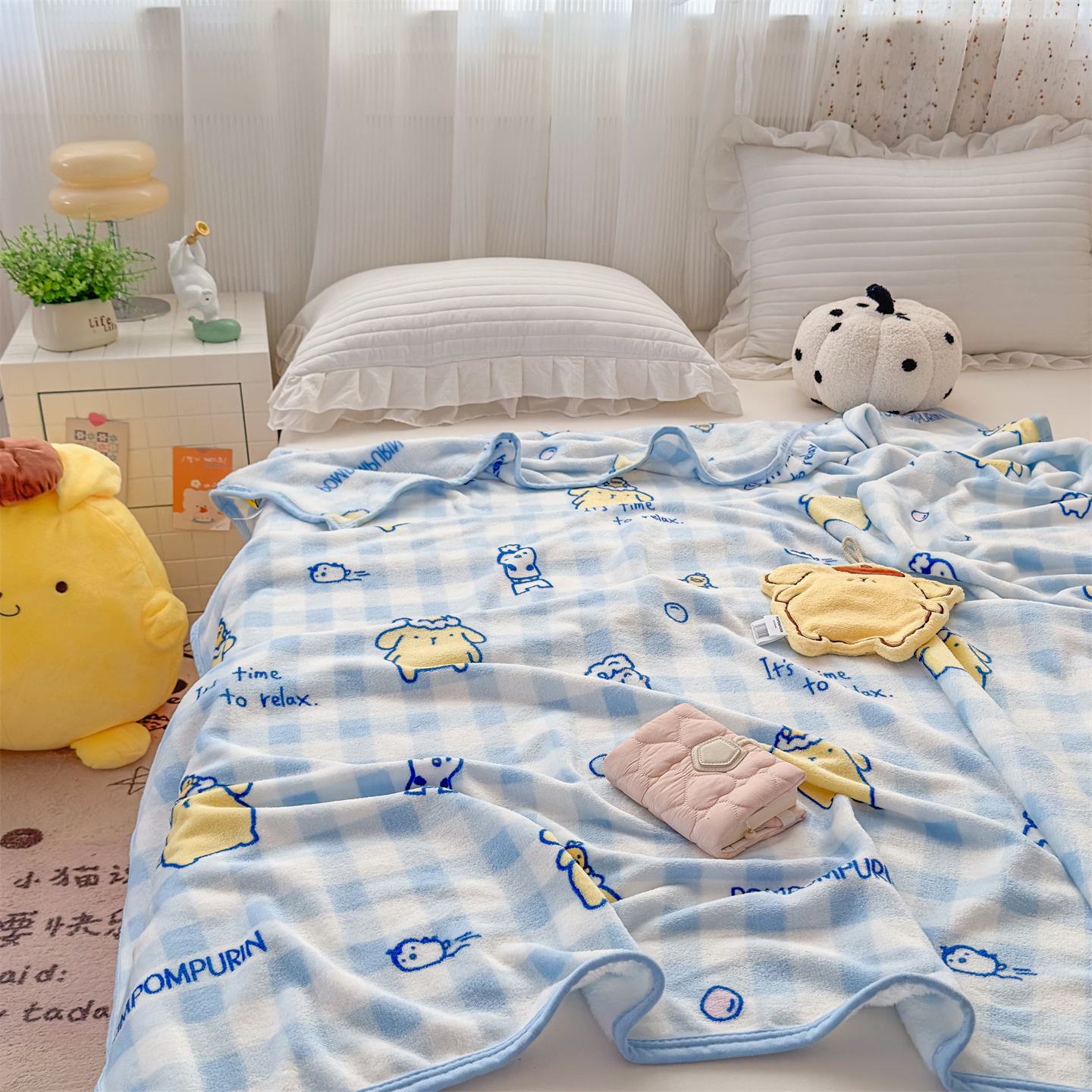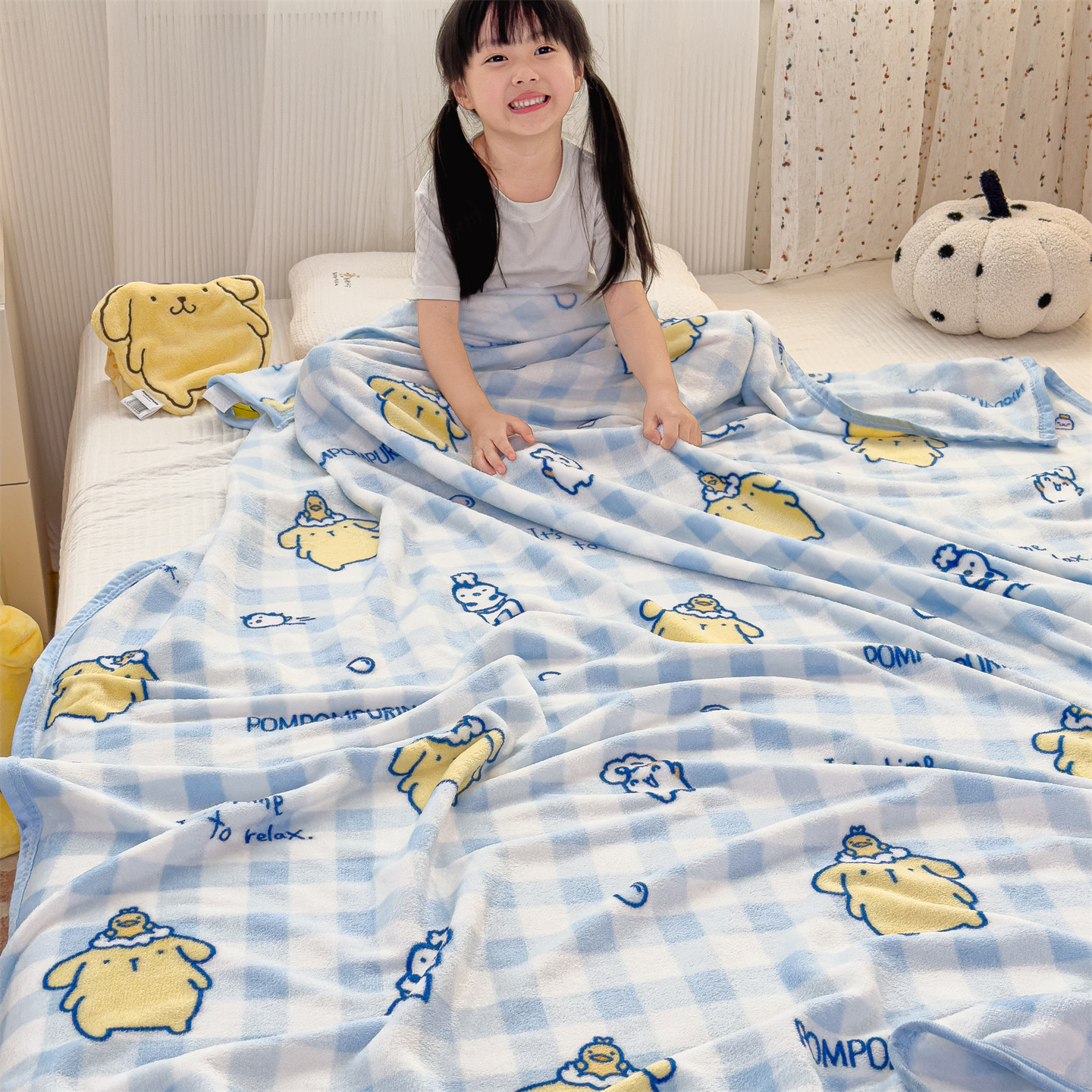 (总)花满路 2025新款亲肤舒适三丽鸥羊羔毛毯,格子布丁狗,卷卷大耳狗,泡泡库洛米,糯糯美乐蒂,暖暖玉桂狗,棉花美乐蒂,派对库洛米,乖巧kt,俏皮kt,甜蜜kt,团团布丁狗,kt伙伴