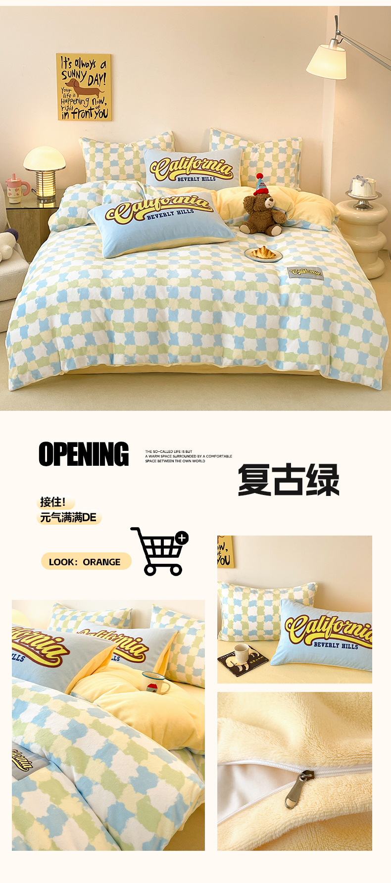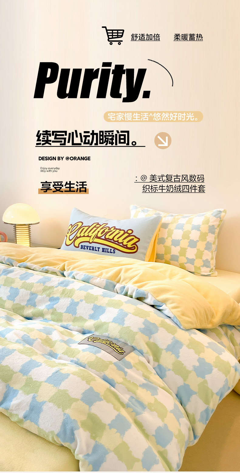 商品名称:如一 2025新款美式复古风数码织标牛奶绒四件套 复古绿