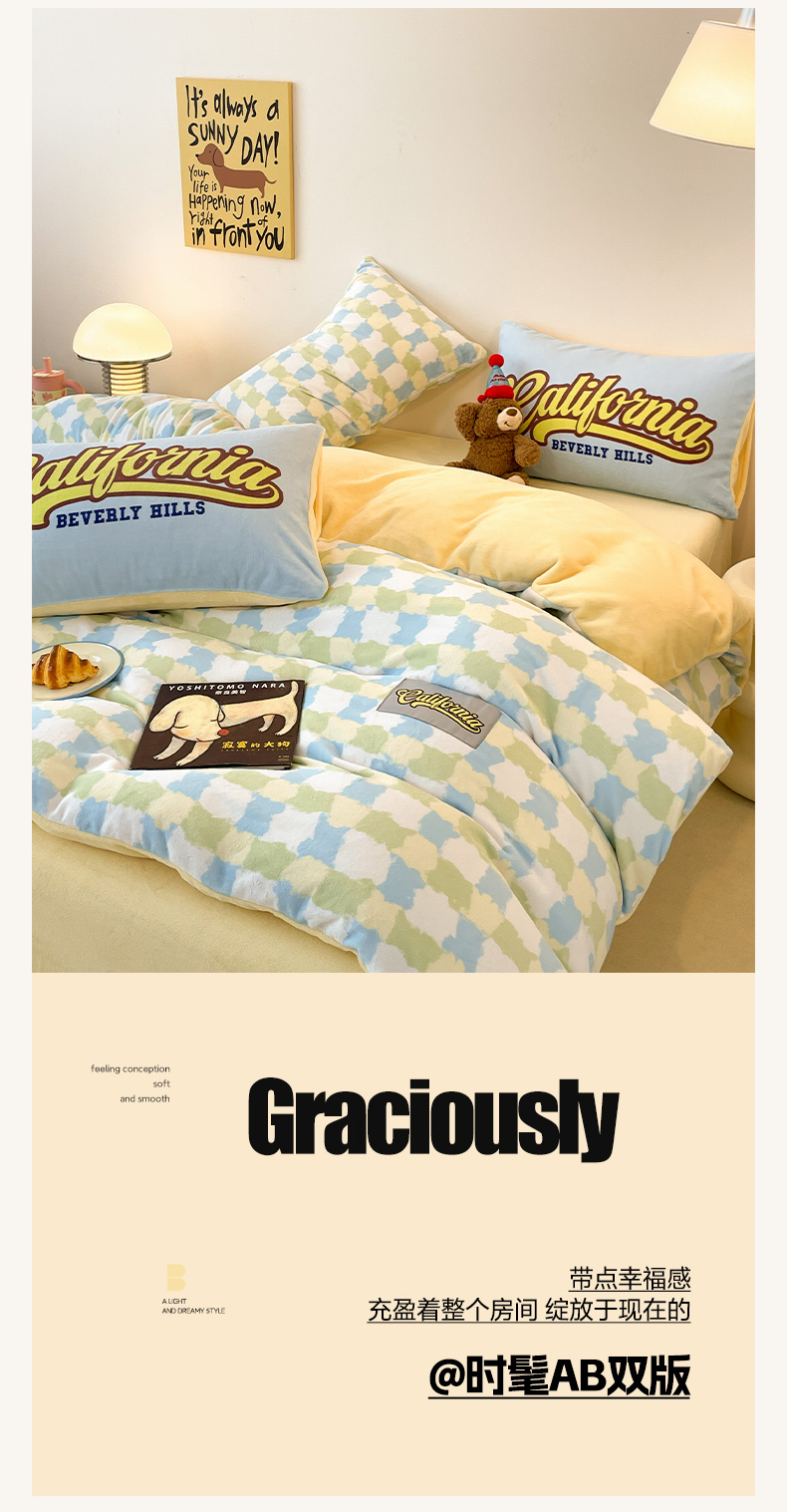 (总)如一 2025新款高克重大版数码印花牛奶绒四件套,毛毛狗,猫咪酱,俏皮狗,色彩猫,小熊仔,熊猫咖,游乐园,粉伙伴,拉兔咖,萌宠黄,萌宠绿,萌派对,围巾狗,线条狗,小粉喵,小花喵,小伙伴