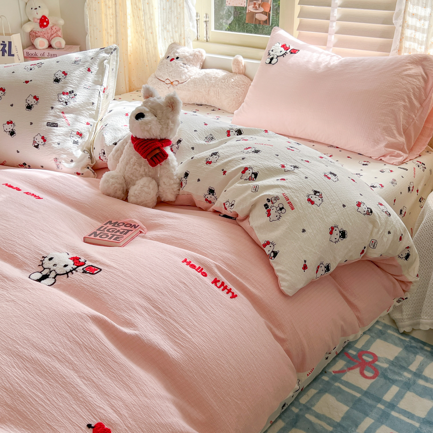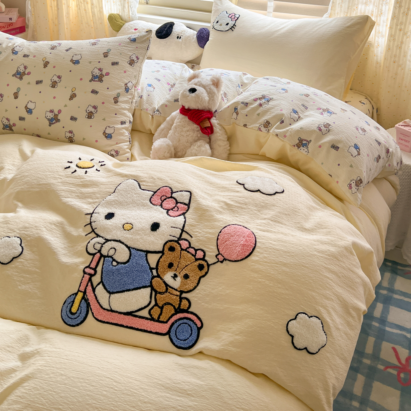 当前位置: 91家纺网 > 商品网购 > 床品套件 > 四件套 > 毛巾绣四件套 > 童颜 2025新款三丽鸥正版授权云感木棉a类毛巾绣四件套 萌趣KT