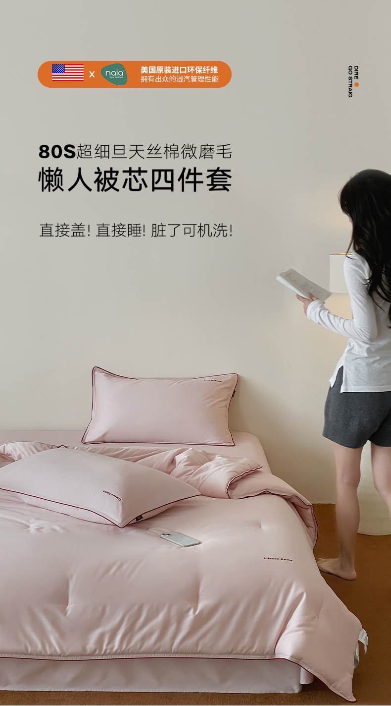 丽笙被芯 2025新款秋冬亲肤舒适80S超细旦天丝棉微磨毛素色可水洗懒人被-场景二 日光粉