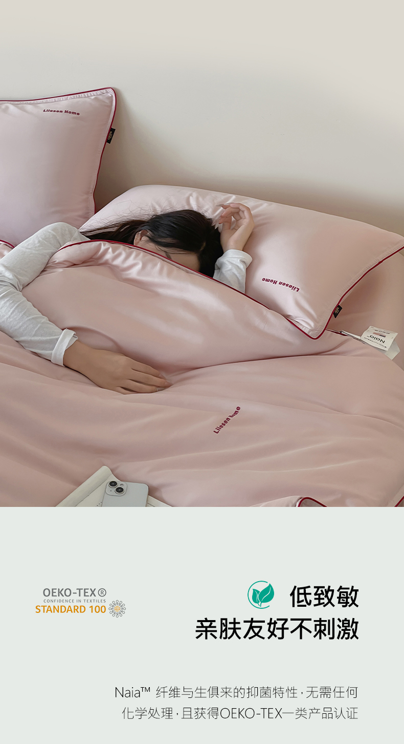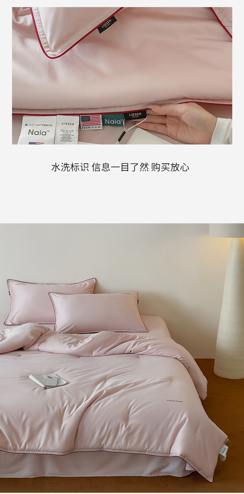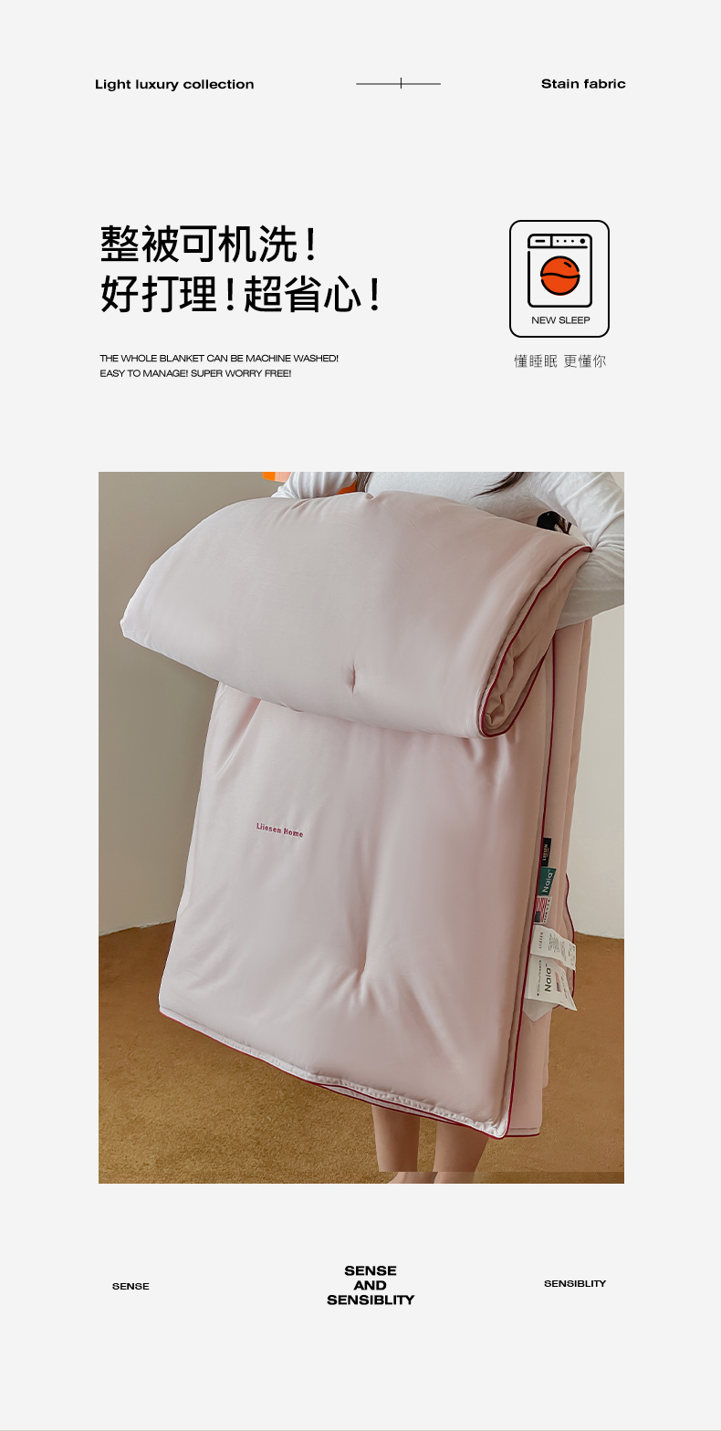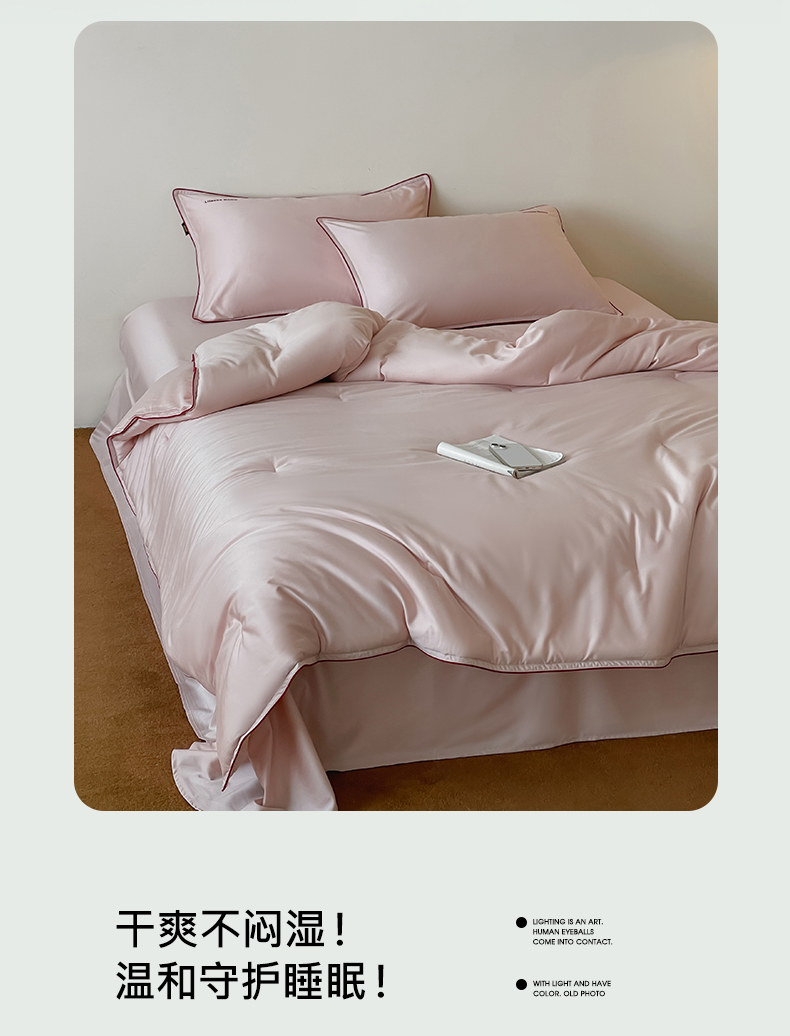 • 91家纺网 家纺一手货源 找家纺 丽笙被芯 2025新款秋冬亲肤舒适80S超细旦天丝棉微磨毛素色可水洗懒人被-场景二 日光粉
