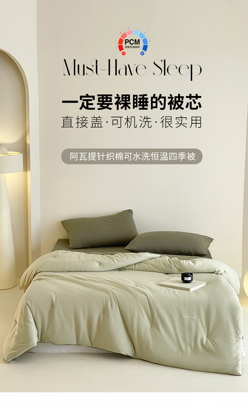 商品名称:丽笙被芯 2025新款阿瓦提针织棉可水洗恒温四季被懒人被被子被芯 春水绿