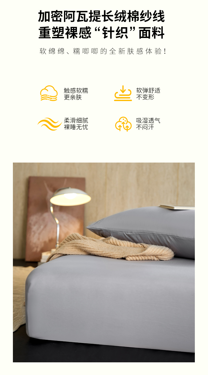 商品名称:丽笙被芯 2025新款亲肤舒适阿瓦提针织全棉纯棉床笠单品床笠单件床笠 清爽灰