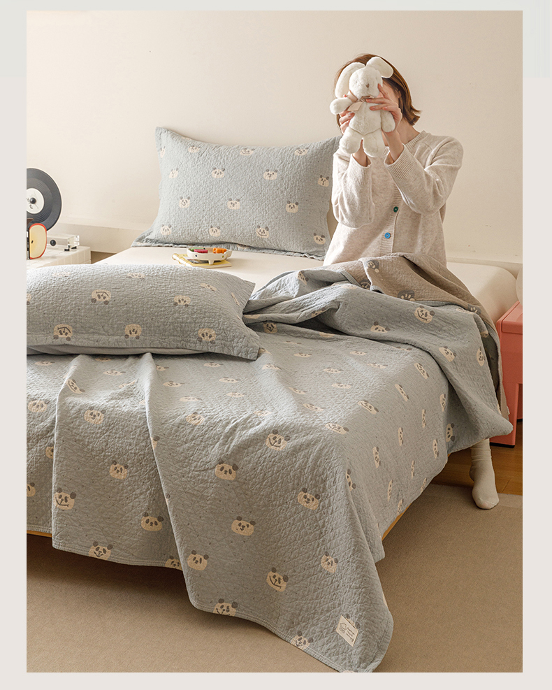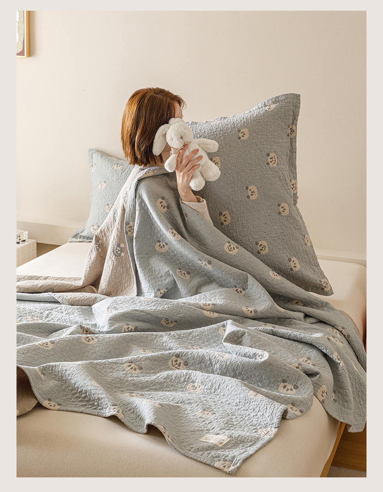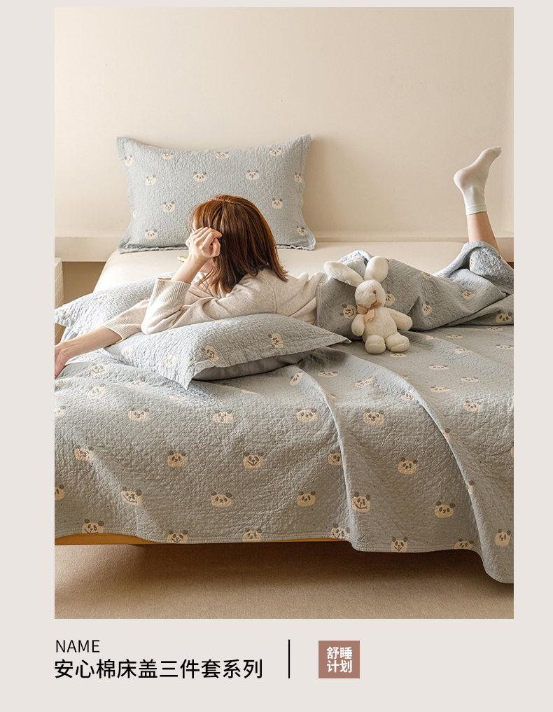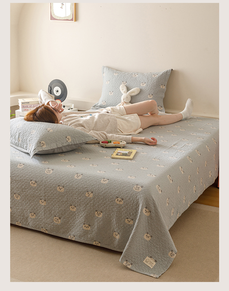 商品名称:麻依 2025新款安心棉床盖三件全棉四层纱布床单 蓝色熊猫