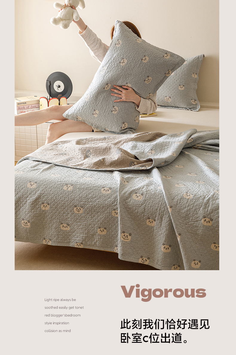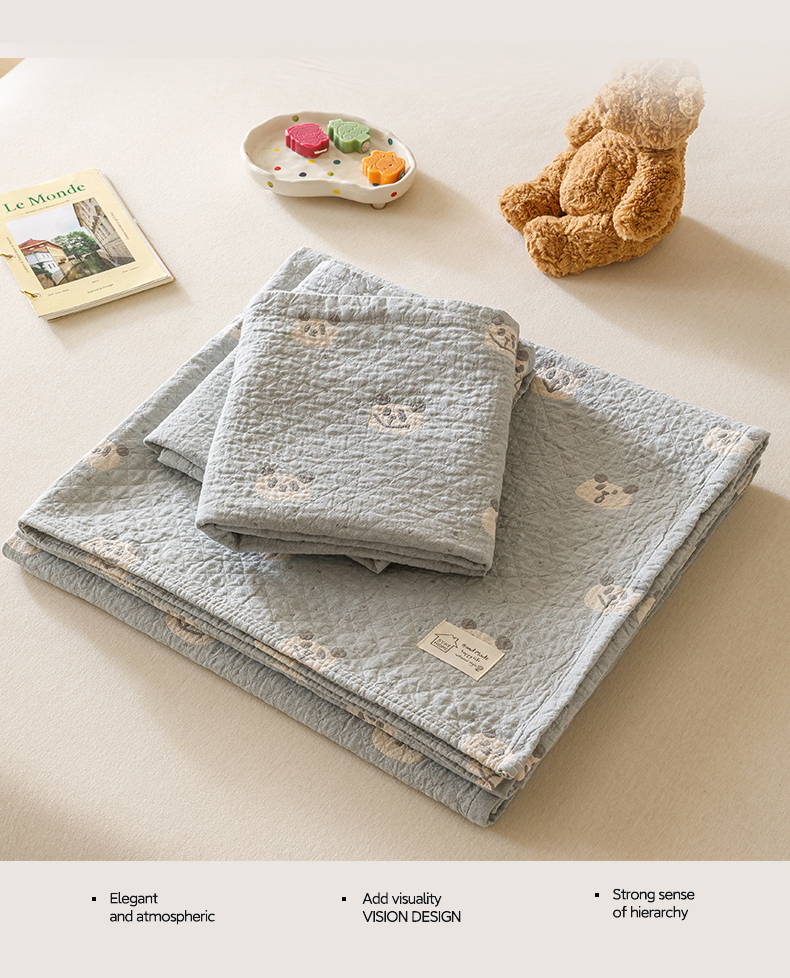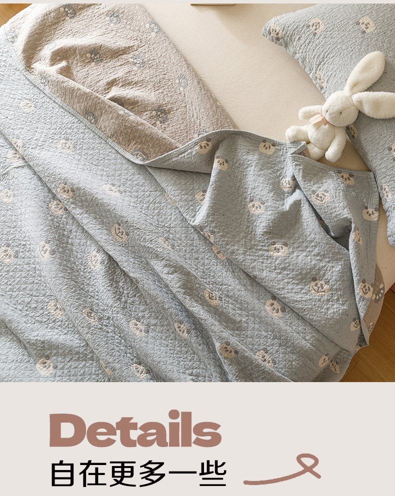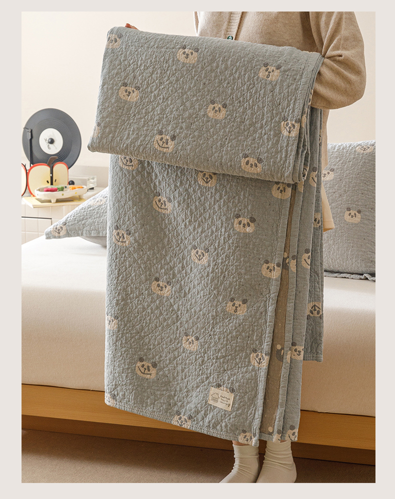 商品名称:麻依 2025新款安心棉床盖三件全棉四层纱布床单 蓝色熊猫
