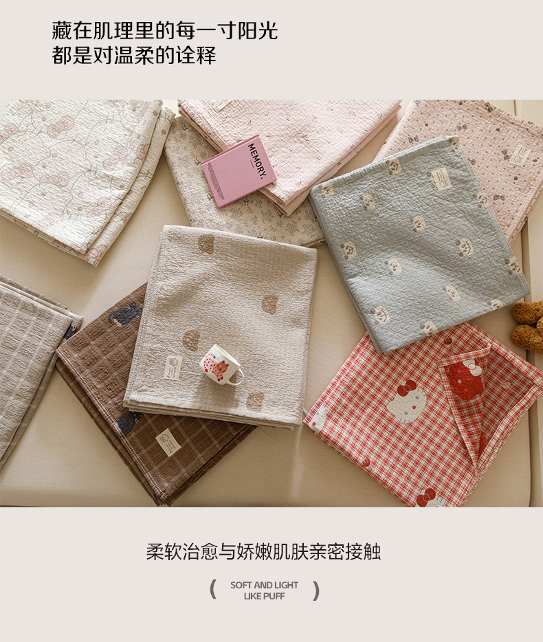 (总)麻依 2025新款十层纱布棉花糖春秋被被子泡芙被,抱抱熊,点点-白,点点-灰,花影-粉,花影-米,墨心,奶油草莓,帕帕熊,牵手小熊,生日腊肠狗,甜甜圈小熊,小蝴蝶结,小南瓜,小柿子,樱桃香