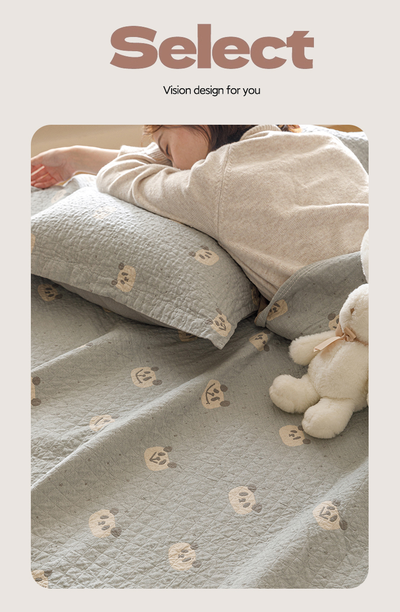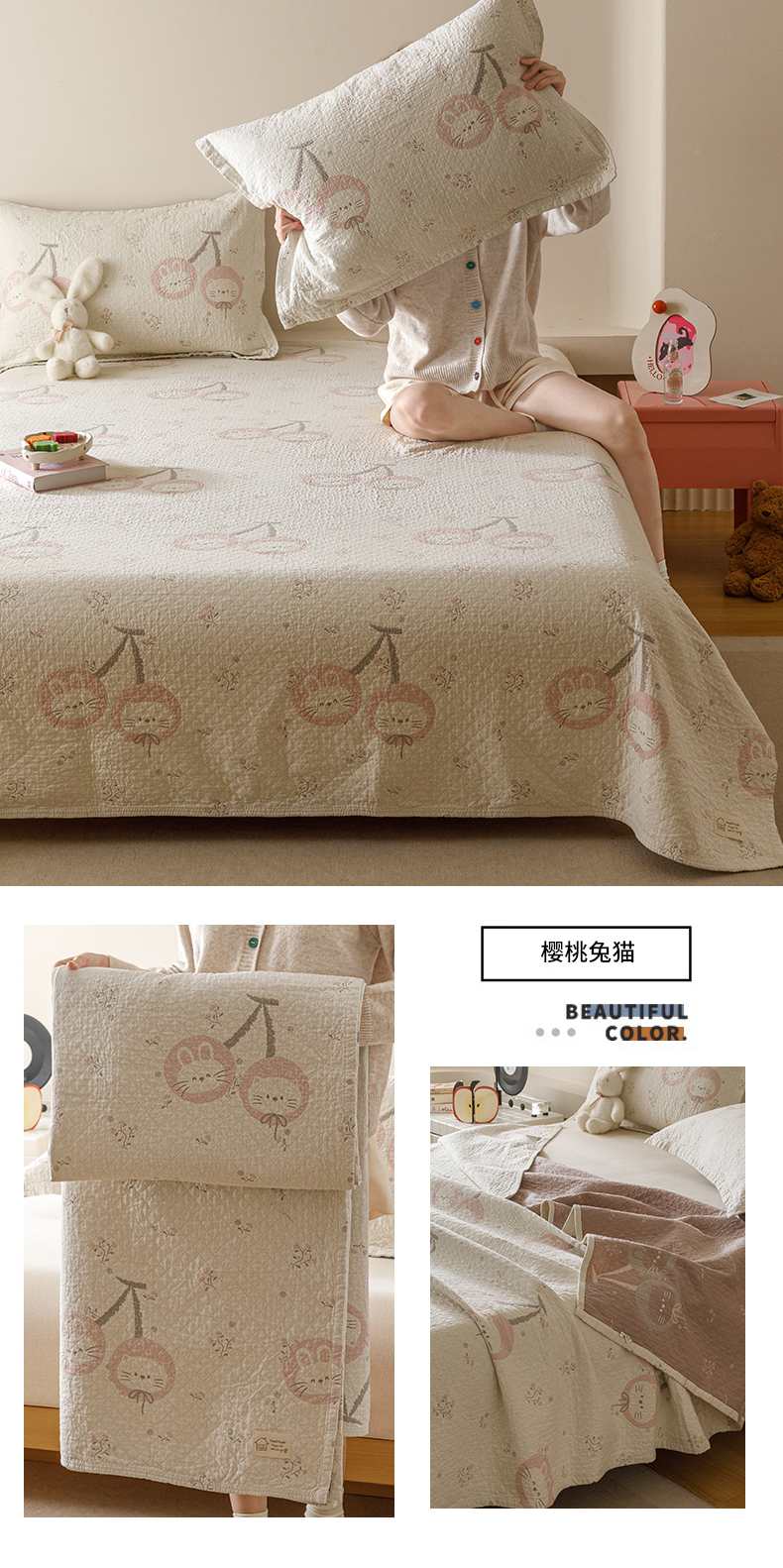 (总)麻依 2025新款韩国清新全棉纱布床盖三件套,憨憨熊,彩色南瓜,车厘子,两颗草莓,奶盖KT,奶油波点-灰,奶油彩点,水蓝KT,水墨花,丝带,桃心-米白,小猫鱼