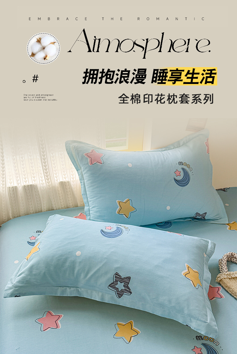 尚帛 2026新款全棉品质喷气印花爆款四件套 多规格套件 单品系列-单枕套 星梦想