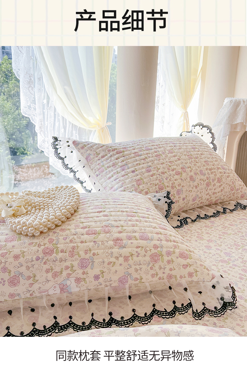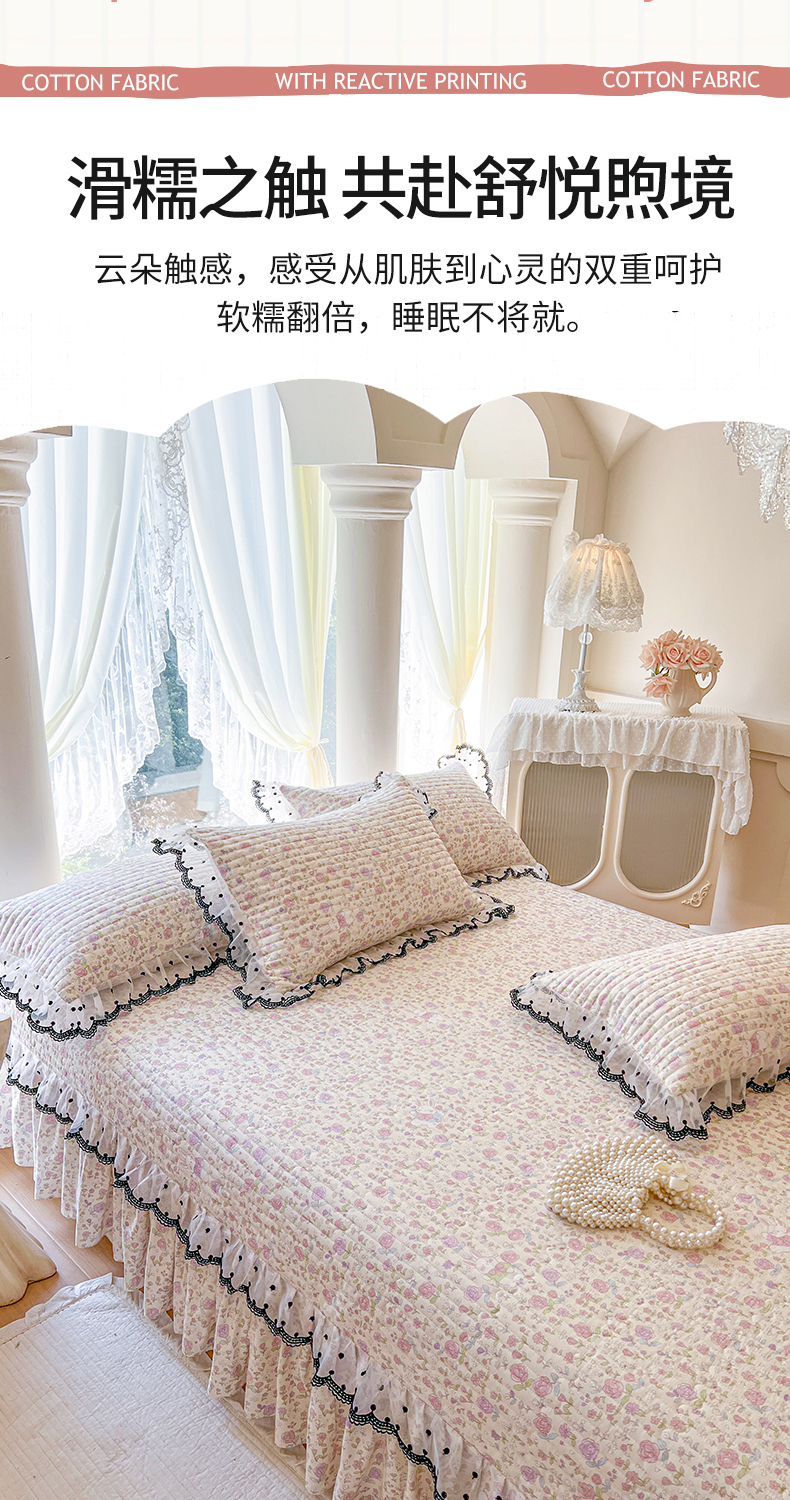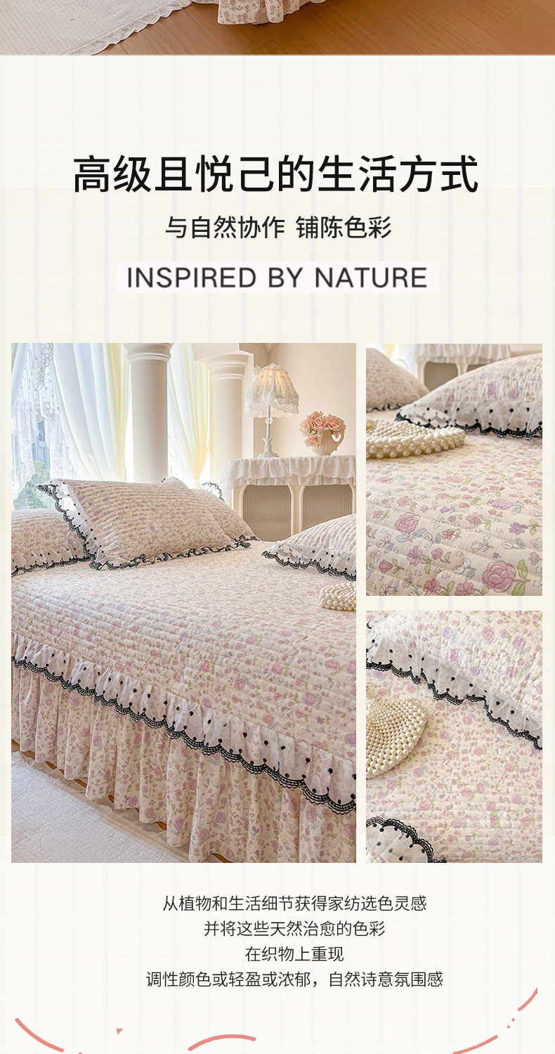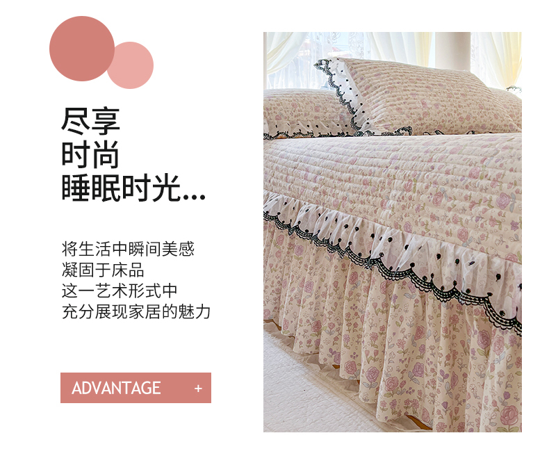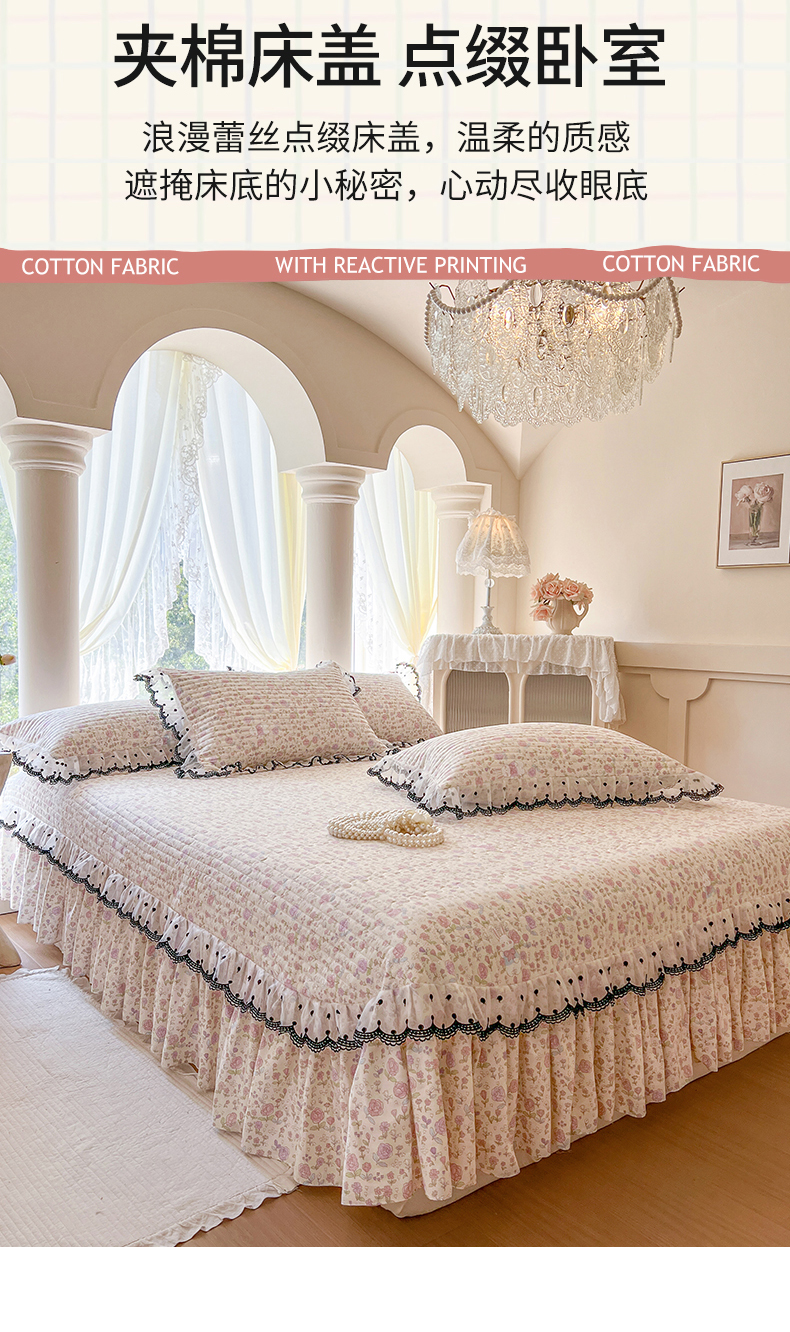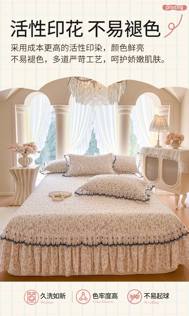 (总)网红馆(ck家纺) 2026新款全棉蕾丝花边床裙款床笠晨暮花间系列,绯红,粉色,麦绿,米色,浅紫,雾蓝