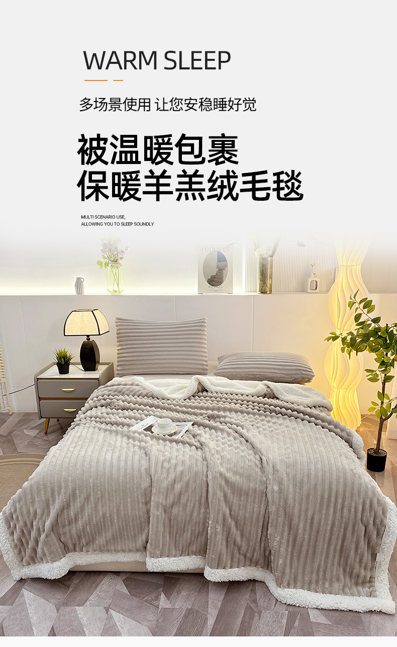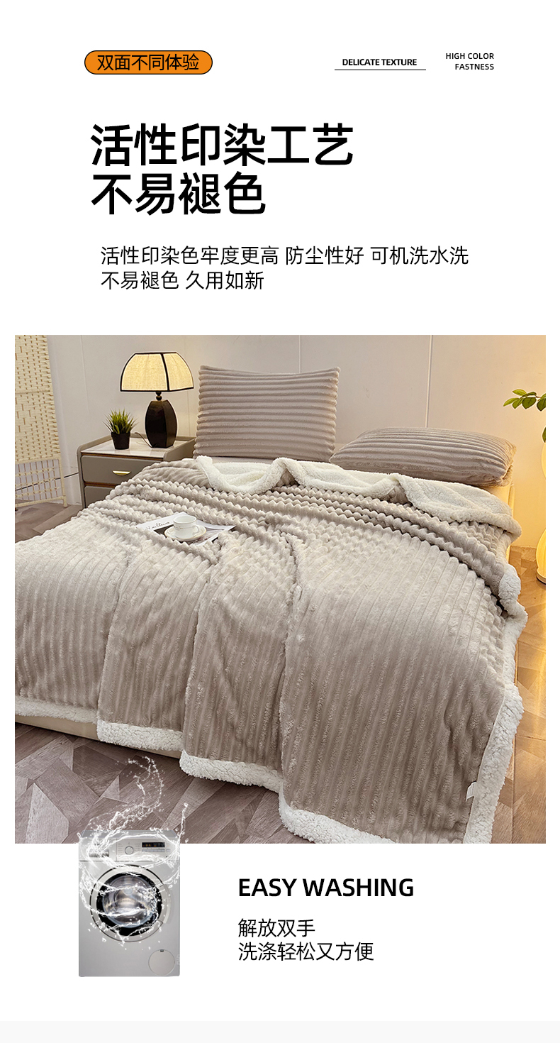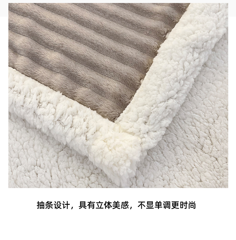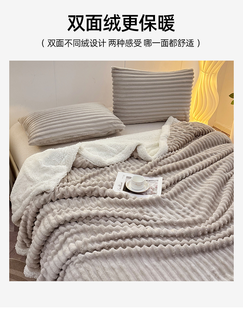 (总)枋梢家纺 2025新款仿兔毛绒大抽条羊羔绒毛毯反包双层条纹羊羔绒法兰绒毛毯跨境外贸,宝蓝,驼色,米白,豆沙粉,香芋紫,果绿,深灰,蓝灰,银灰