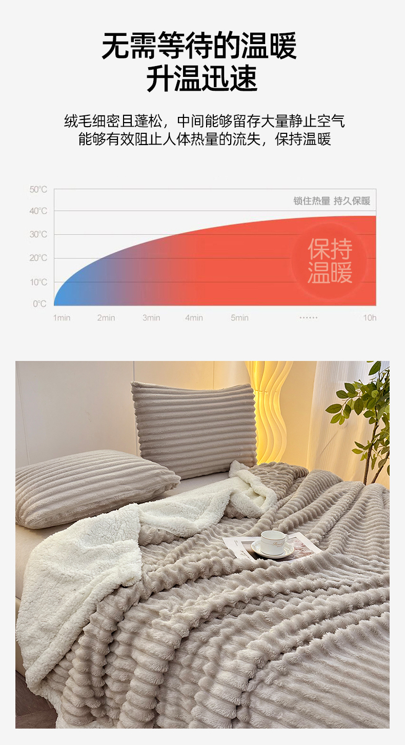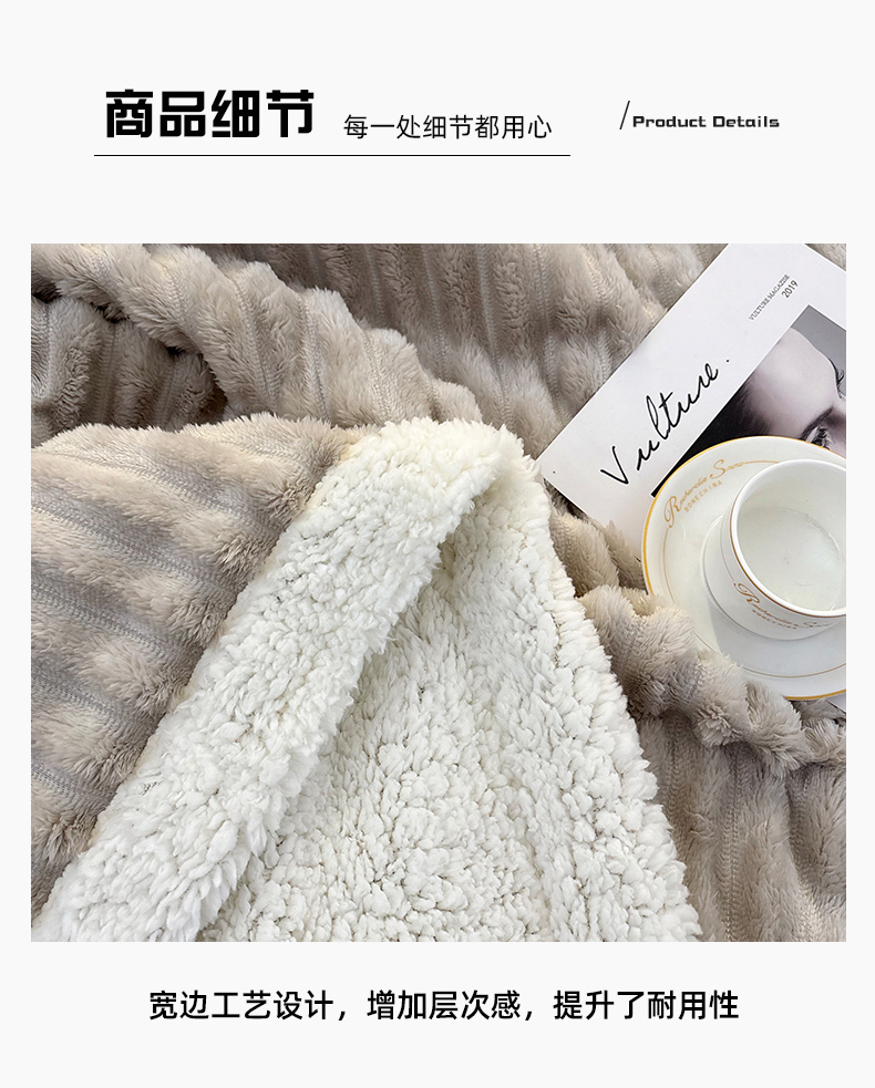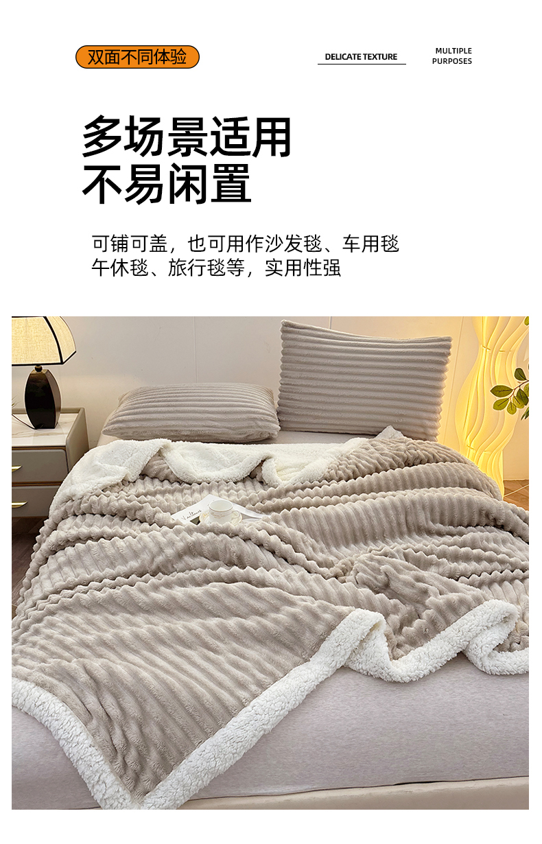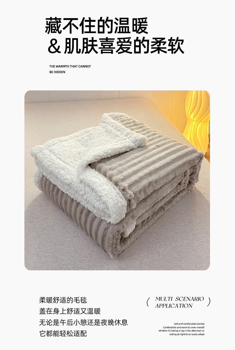 (总)枋梢家纺 2025新款仿兔毛绒大抽条羊羔绒毛毯反包双层条纹羊羔绒法兰绒毛毯跨境外贸,宝蓝,驼色,米白,豆沙粉,香芋紫,果绿,深灰,蓝灰,银灰