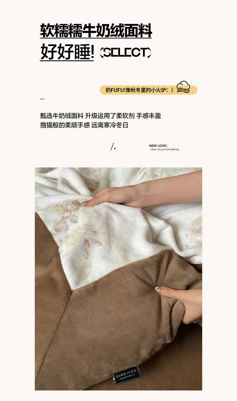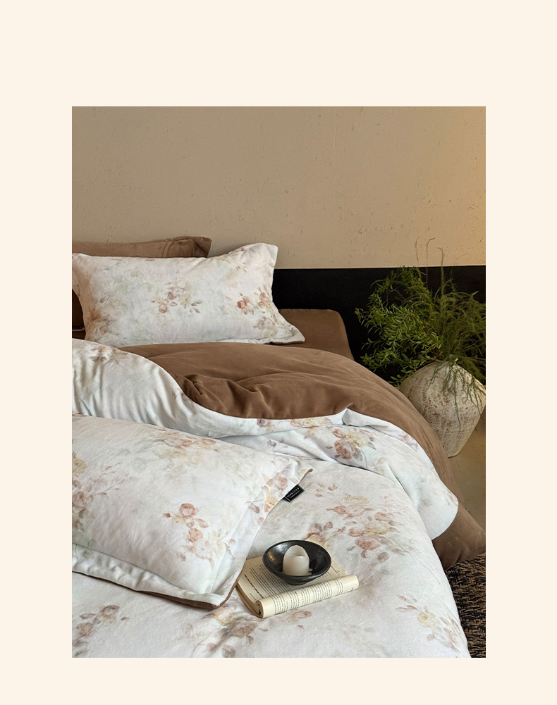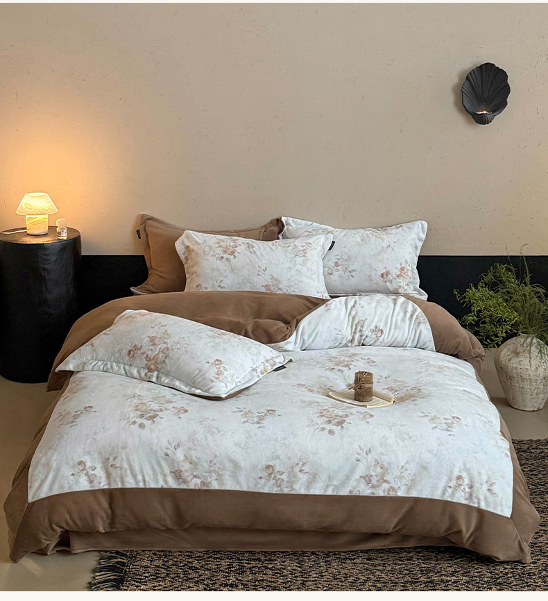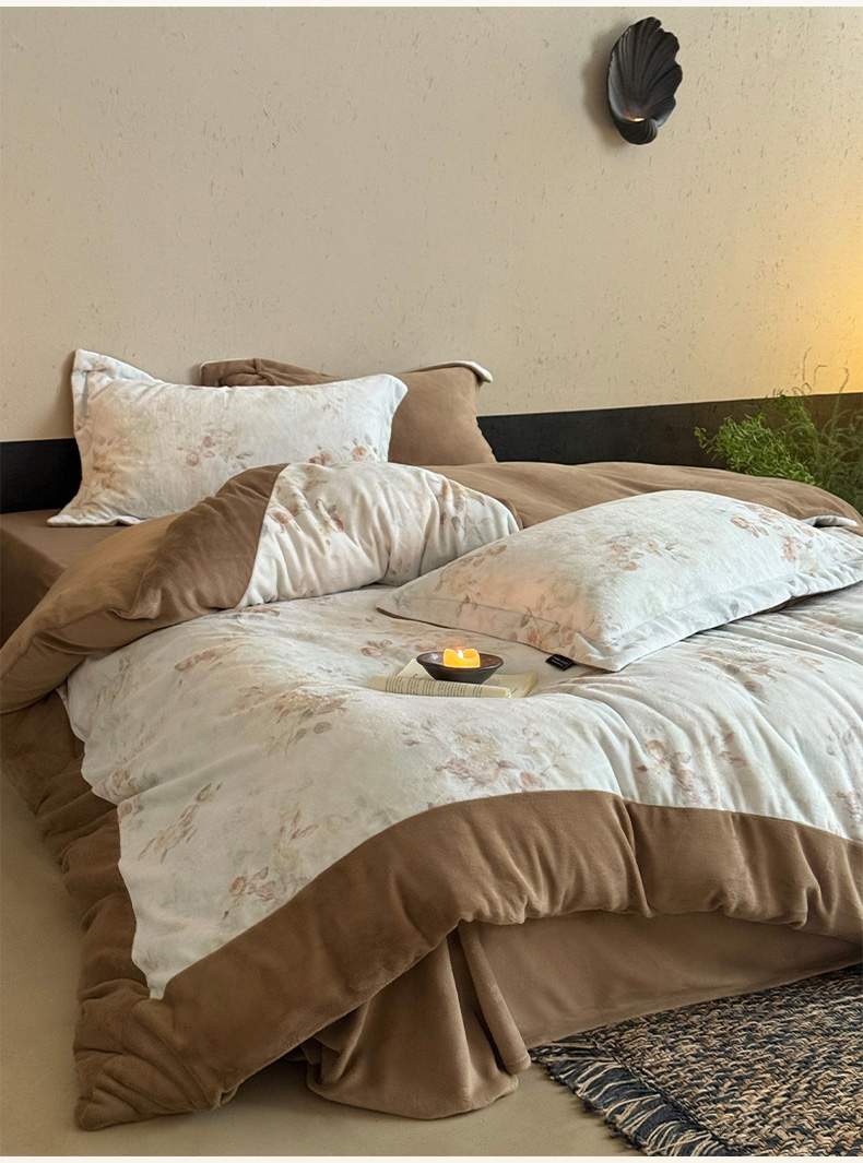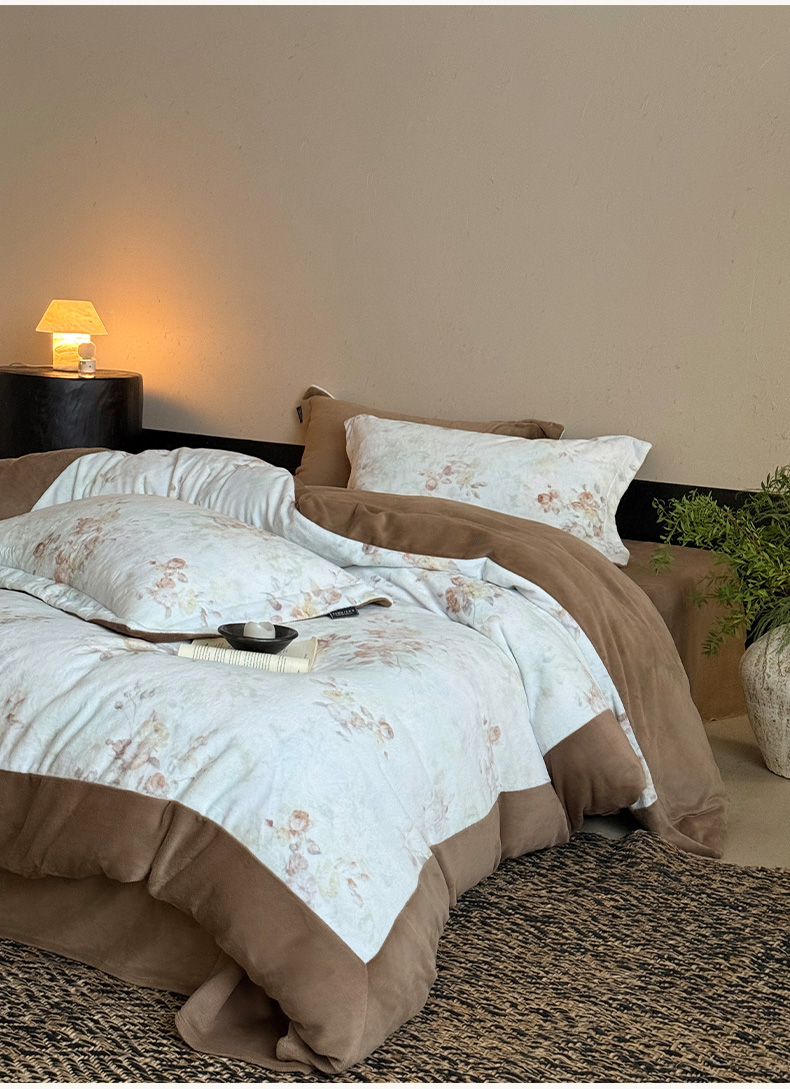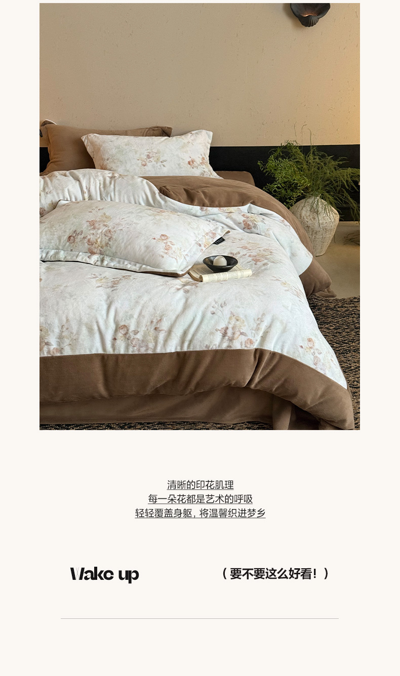 商品名称:三味舒屋 2025新款绒卉奢暖印花牛奶绒花溪系列四件套 (控价券后不低于318/338) 花溪茶咖