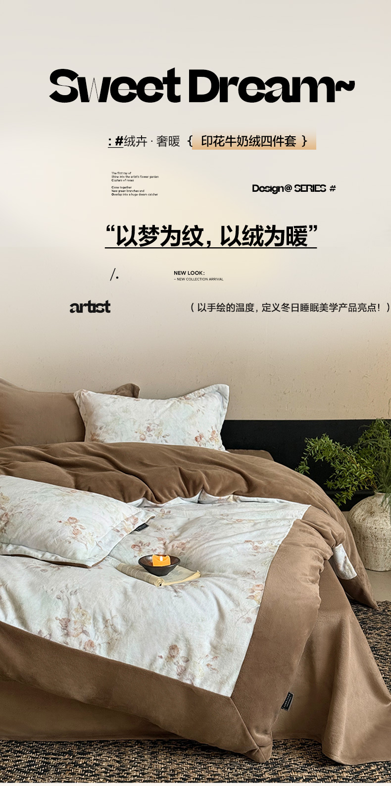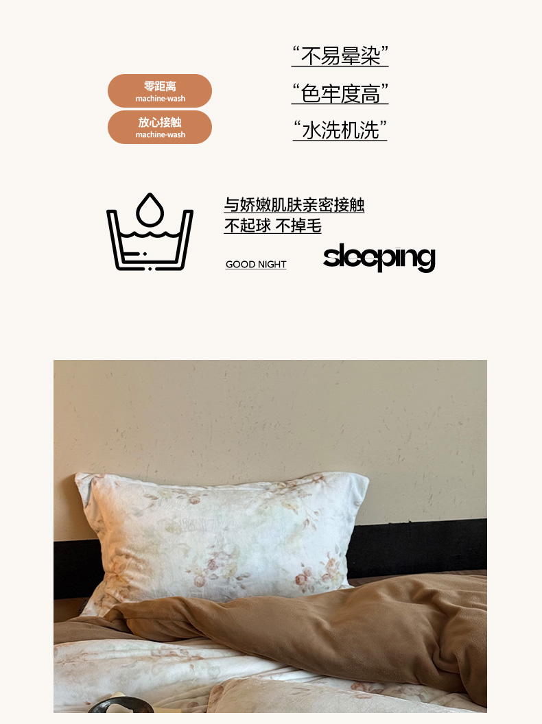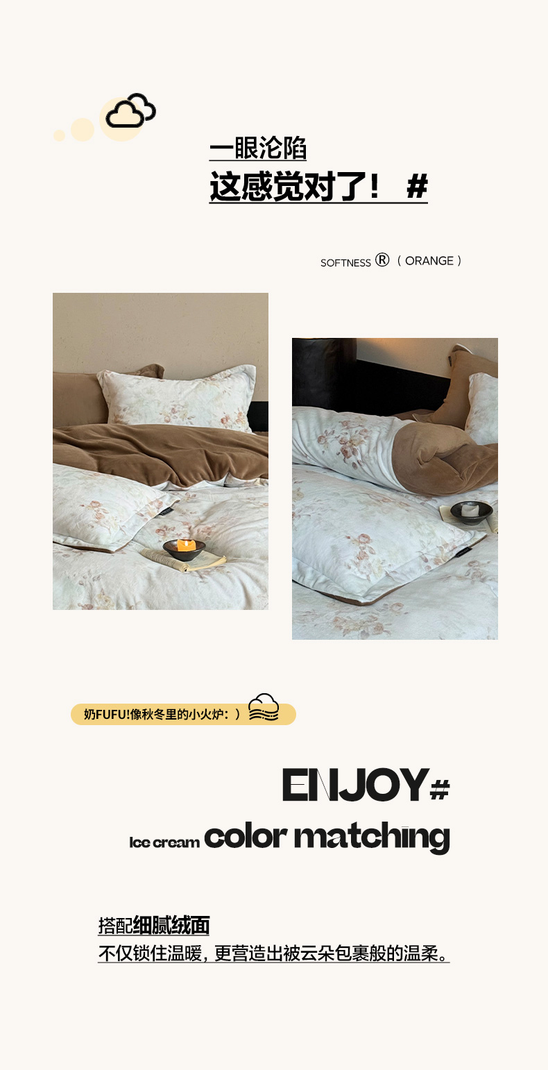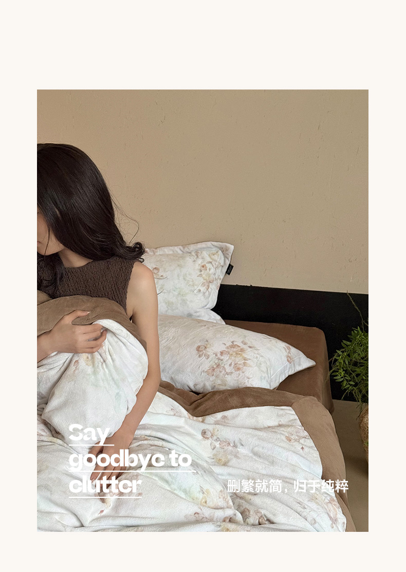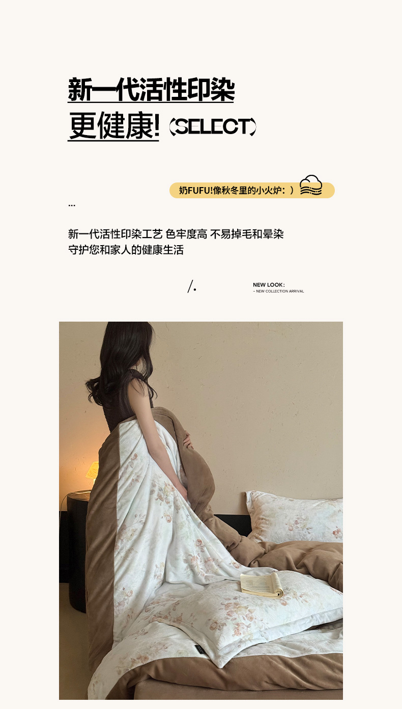 商品名称:三味舒屋 2025新款绒卉奢暖印花牛奶绒花溪系列四件套 (控价券后不低于318/338) 花溪茶咖