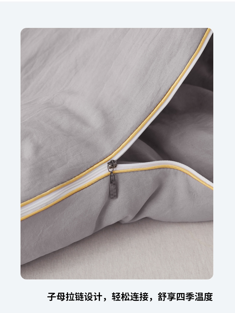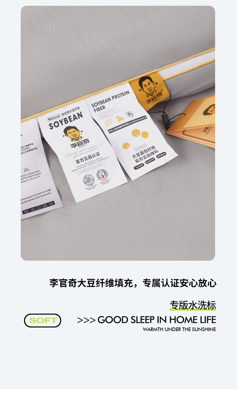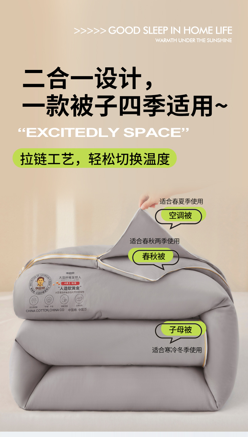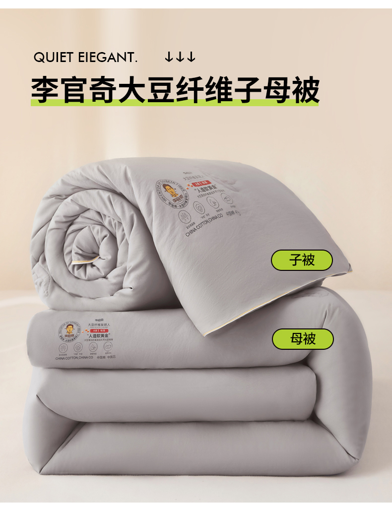 商品名称:恒科家纺 2026新款李官奇官方正品认证李官奇大豆纤维被 子母被拉链二合一被子被芯 浅灰