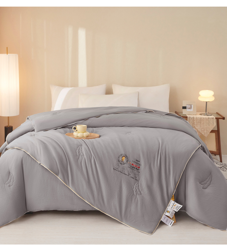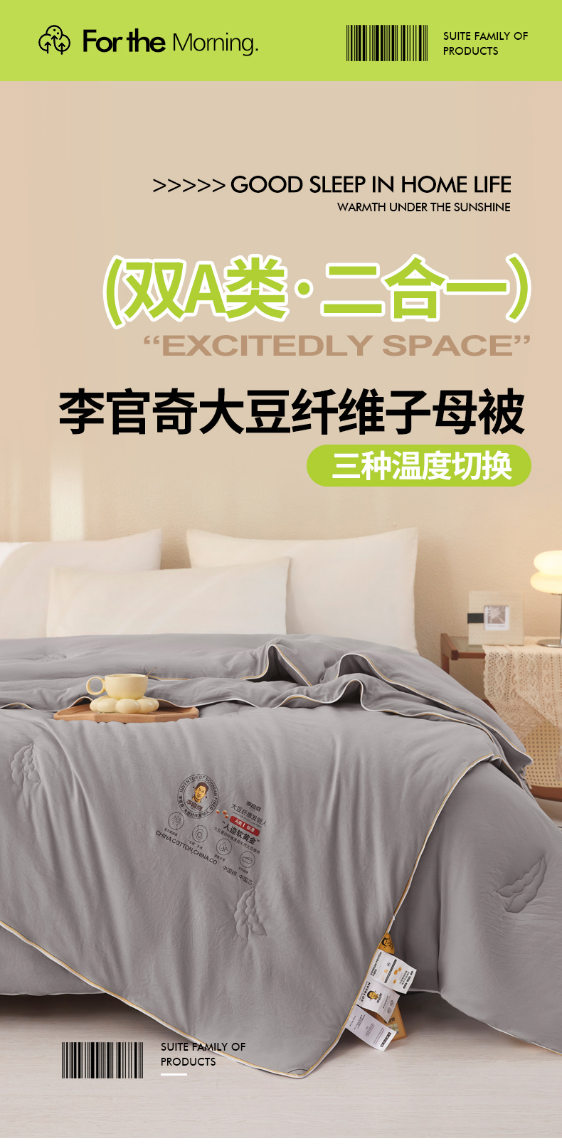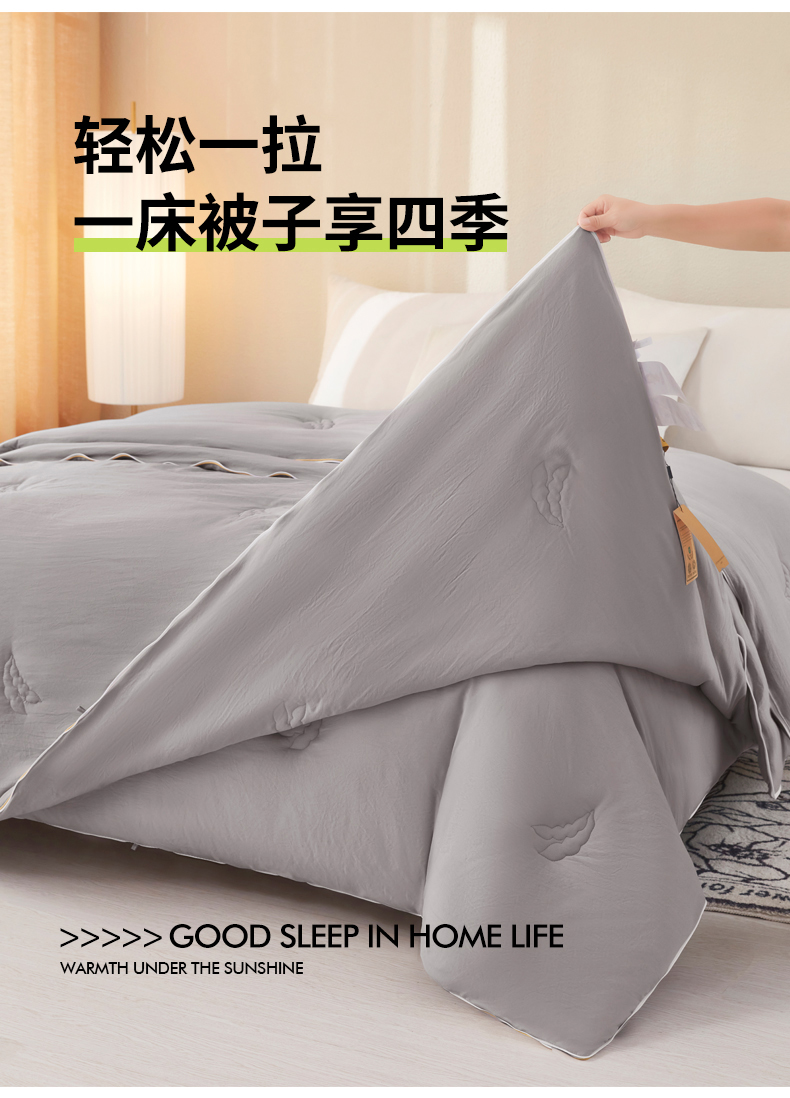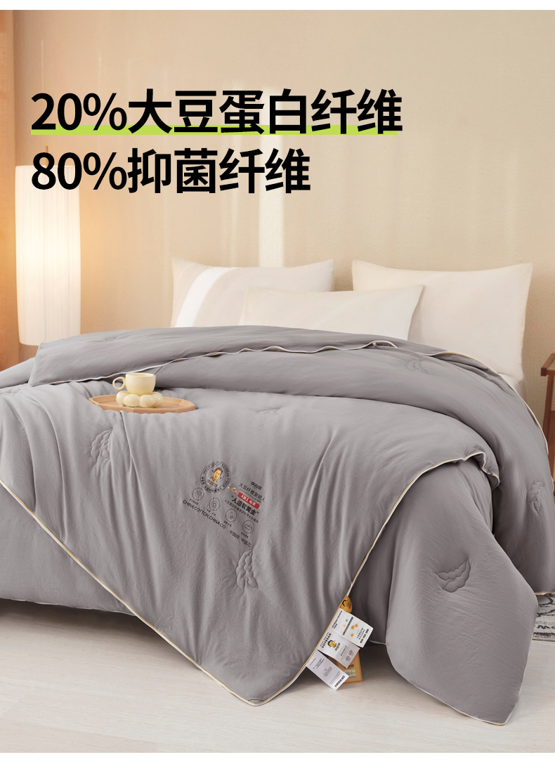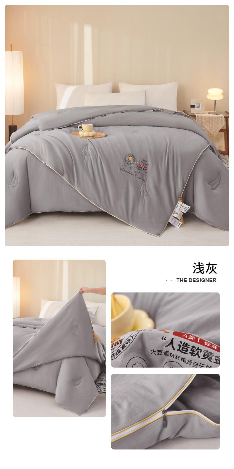 商品名称:恒科家纺 2026新款李官奇官方正品认证李官奇大豆纤维被 子母被拉链二合一被子被芯 浅灰