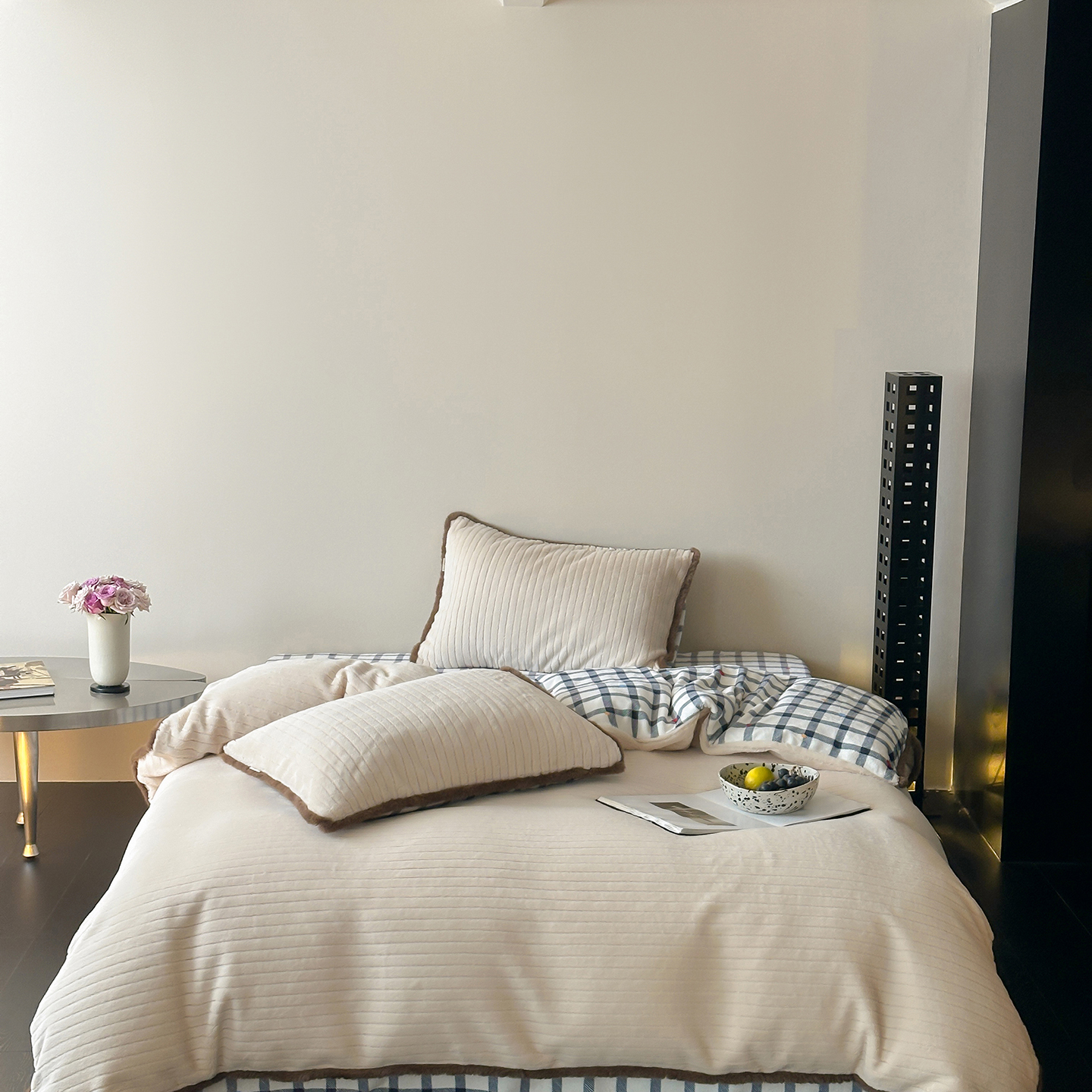 桔子家纺 2025新款兔兔绒牛奶绒雕花系列四件套 白茶