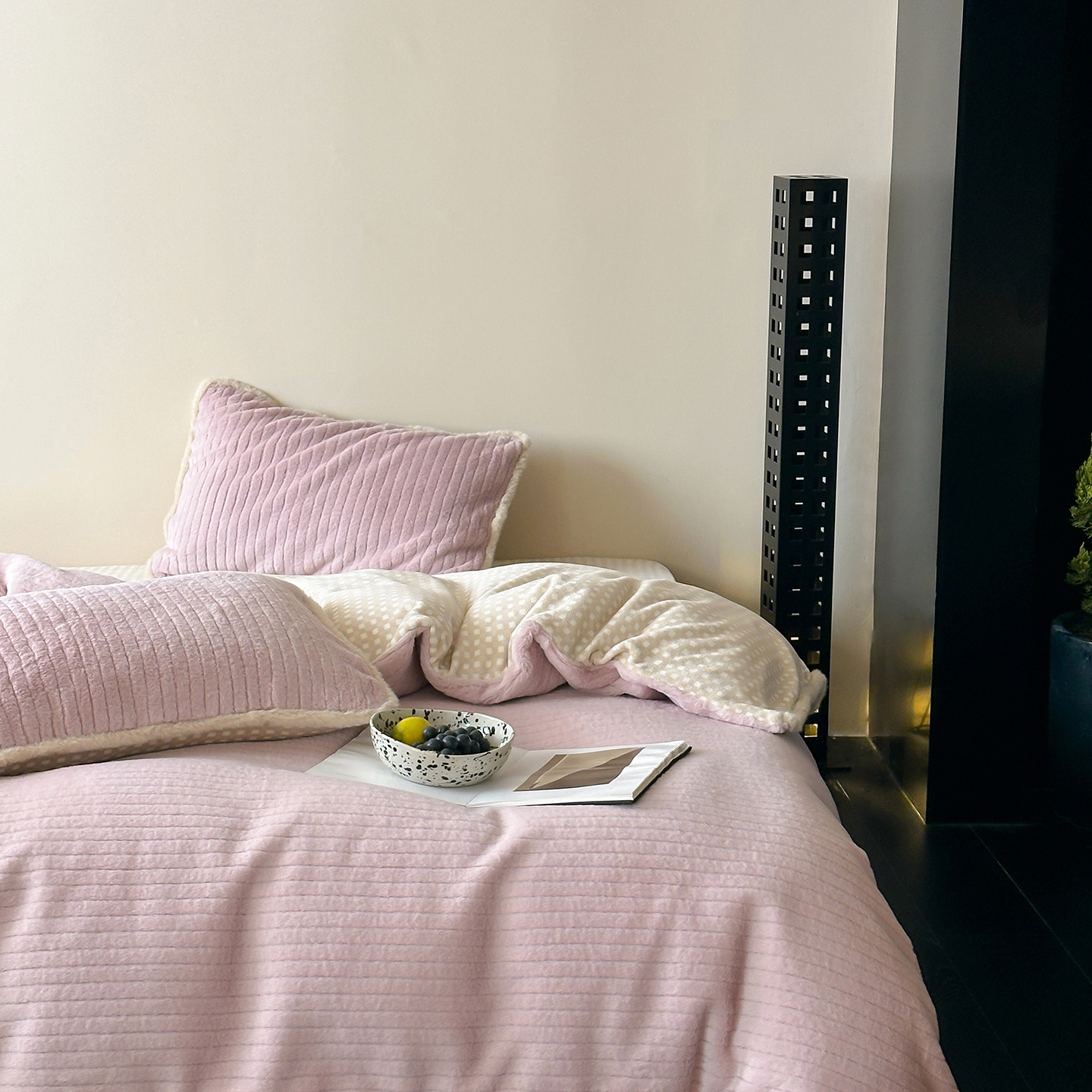 (总)桔子家纺 2026春夏新款100s全棉纯棉复古樱桃系列四件套-场景二,复古樱桃-粉,复古樱桃-米白