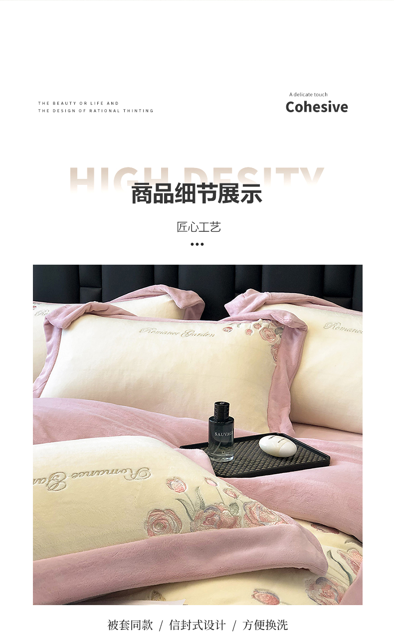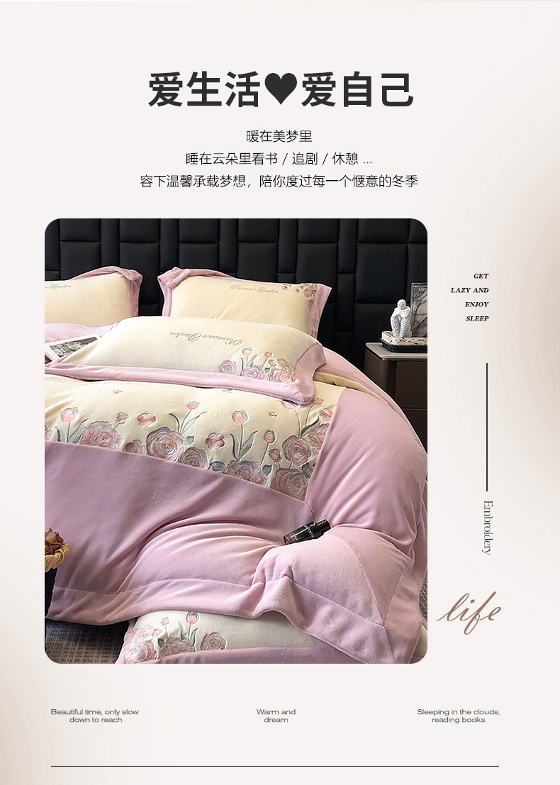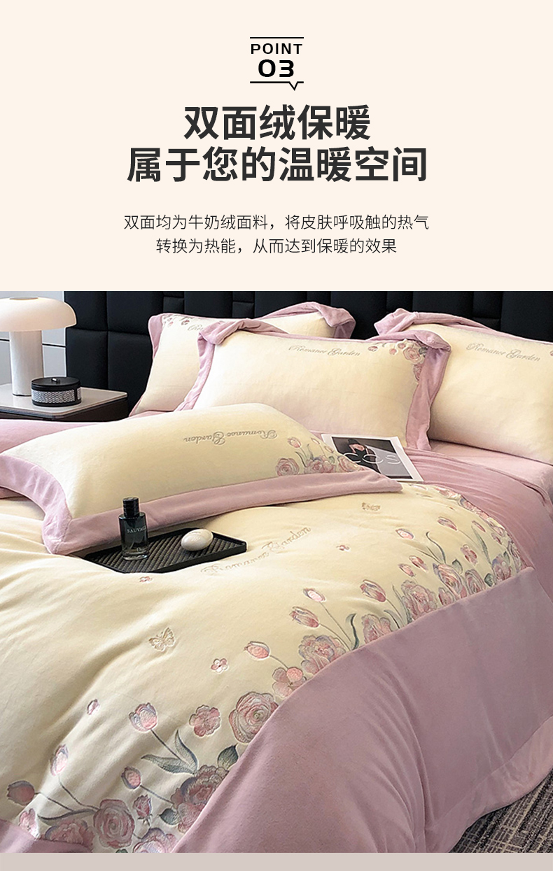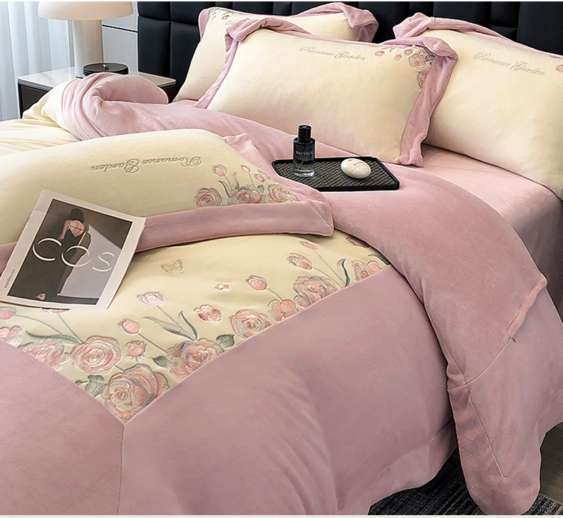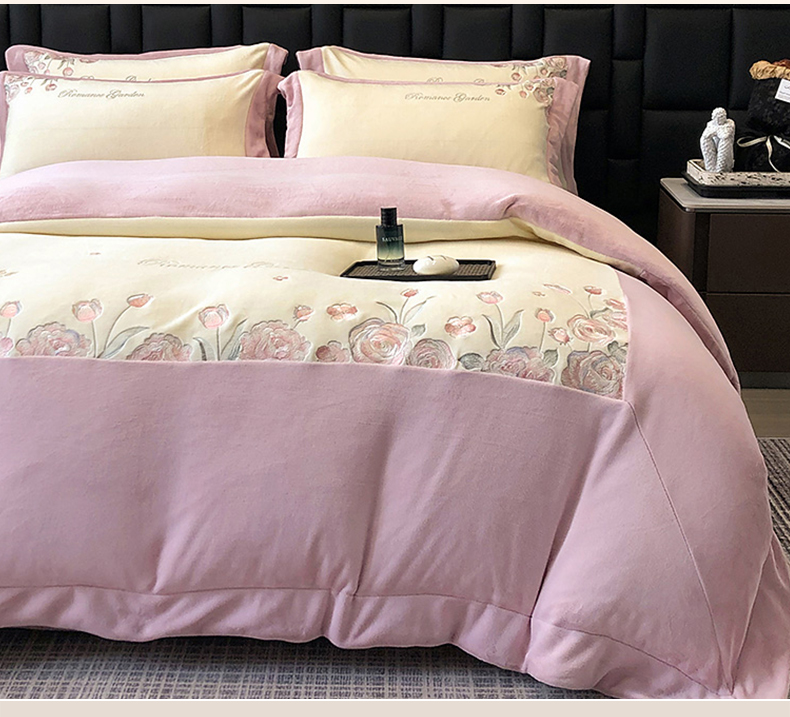 商品名称:家居1号家纺 2025新款230克A类全消光牛奶绒四件套-花海 花海-粉豆沙