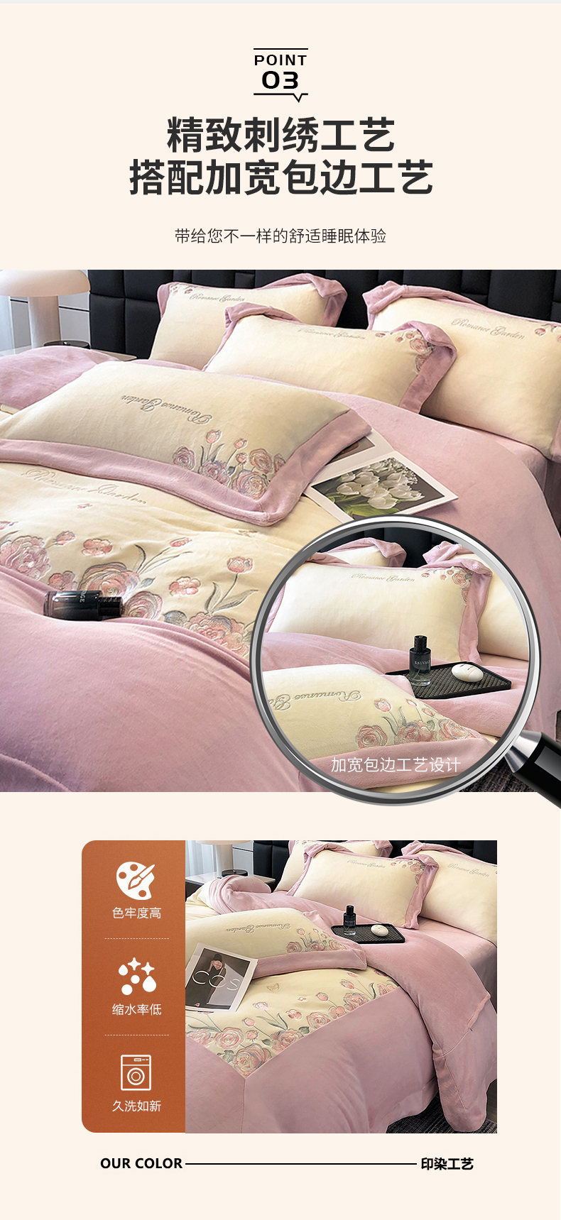 (总)家居1号家纺 2025新款230克A类牛奶绒双拼刺绣四件套-兰黛(控价券后不得低于238元 会员优惠10元),兰黛-浅绿,兰黛-少女粉,兰黛-温馨蓝,兰黛-紫豆沙