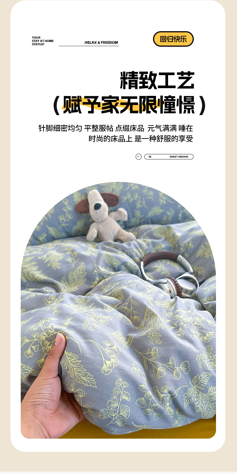 (总)曼璐家纺 2025新款小清新芦荟棉印花四件套,朝花夕拾,初夏,可可西里,喵星人,叶雨,初夏