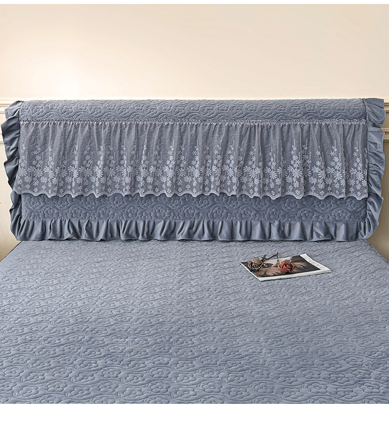 情恒家纺 2025新款宝宝绒夹棉单品床头罩床头罩单件 玫瑰盛典-静夜灰