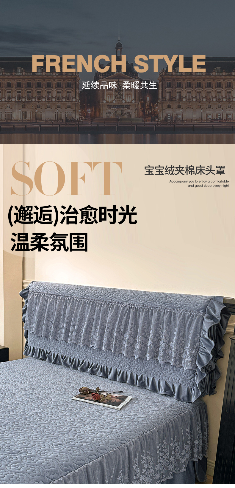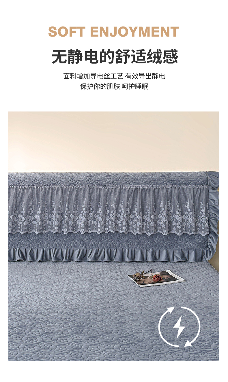 商品名称:情恒家纺 2025新款宝宝绒夹棉单品床头罩床头罩单件 玫瑰盛典-静夜灰