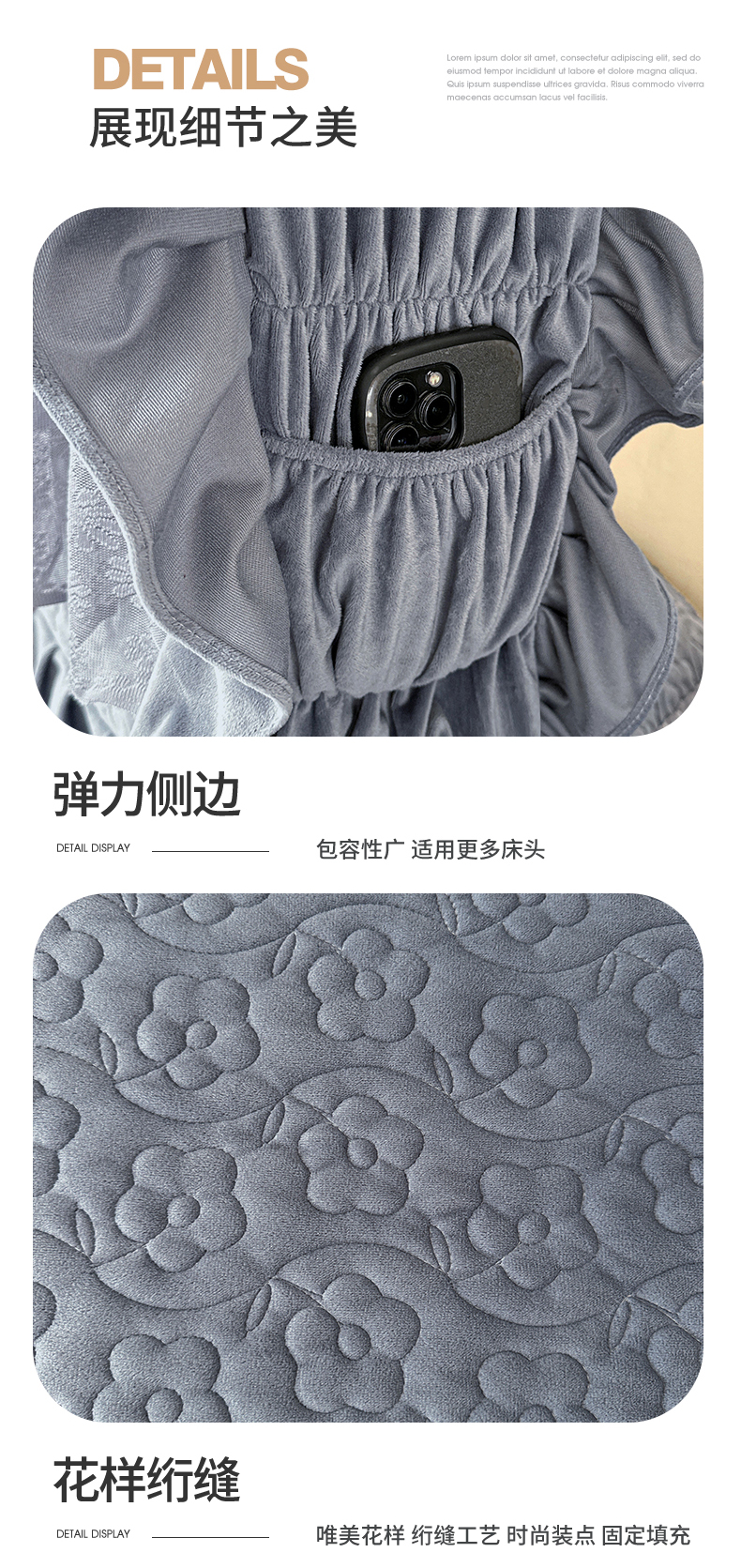 (总)情恒家纺 2025新款兔兔绒抽条加厚床头罩,宾利蓝,星耀黑,咖啡棕,卡其,奶油白,月光灰