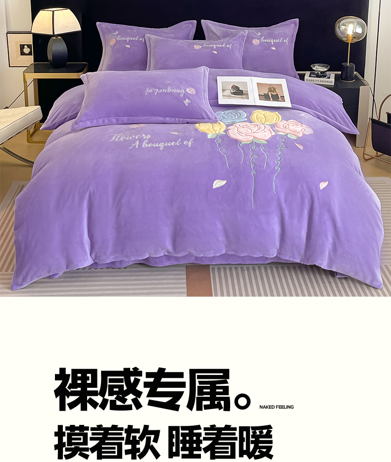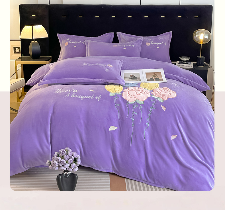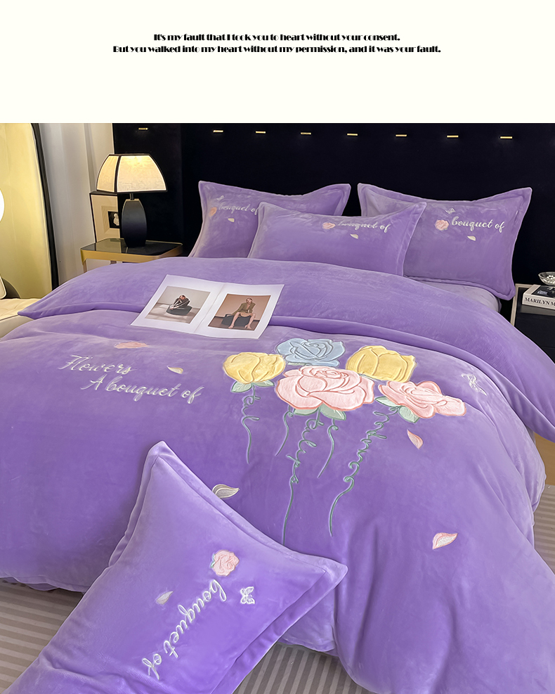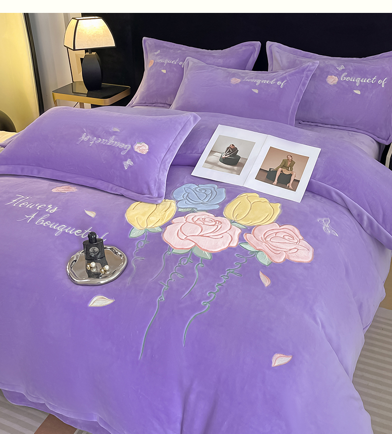 绒小宣 2025新款A类牛奶绒贴布绣四件套-玫瑰爱恋 玫瑰爱恋-浅夏紫