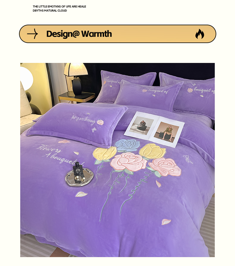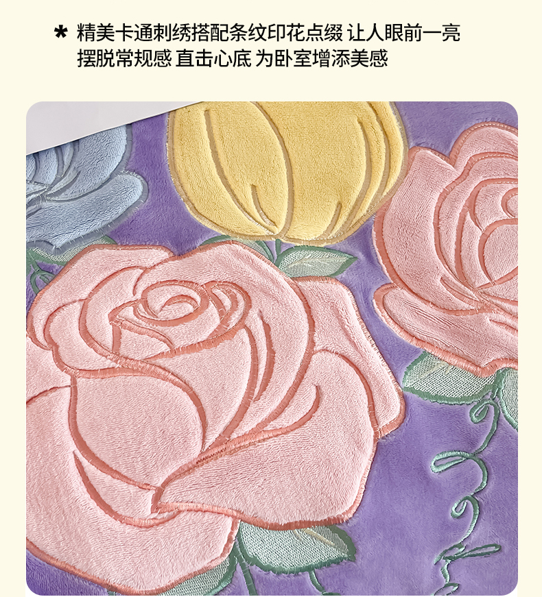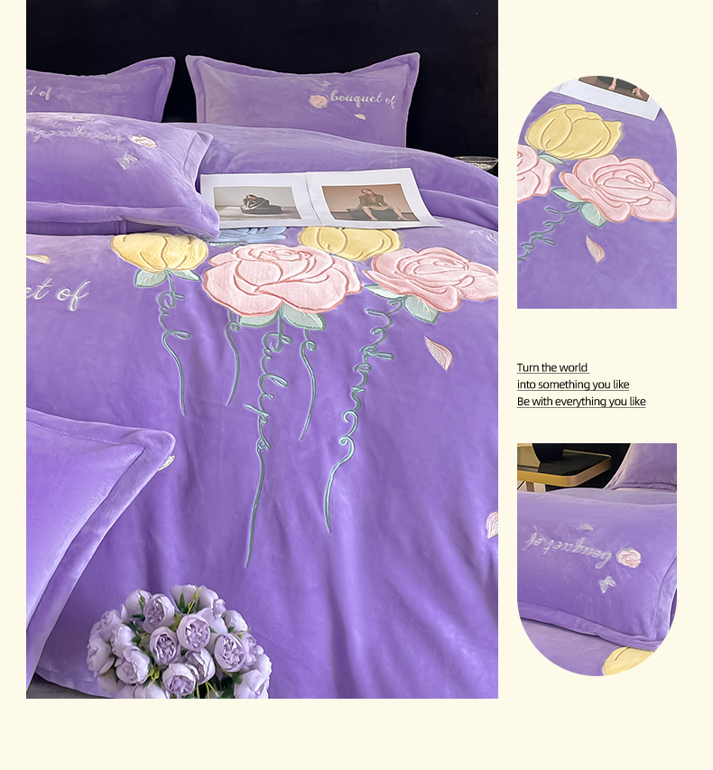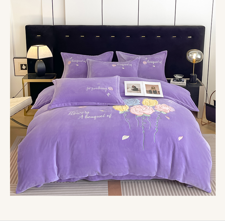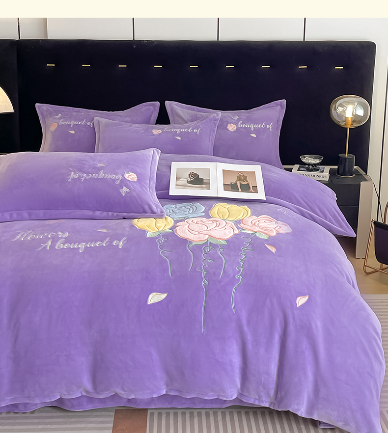 绒小宣 2025新款A类牛奶绒贴布绣四件套-玫瑰爱恋 玫瑰爱恋-浅夏紫