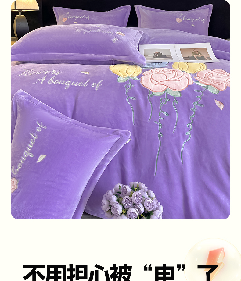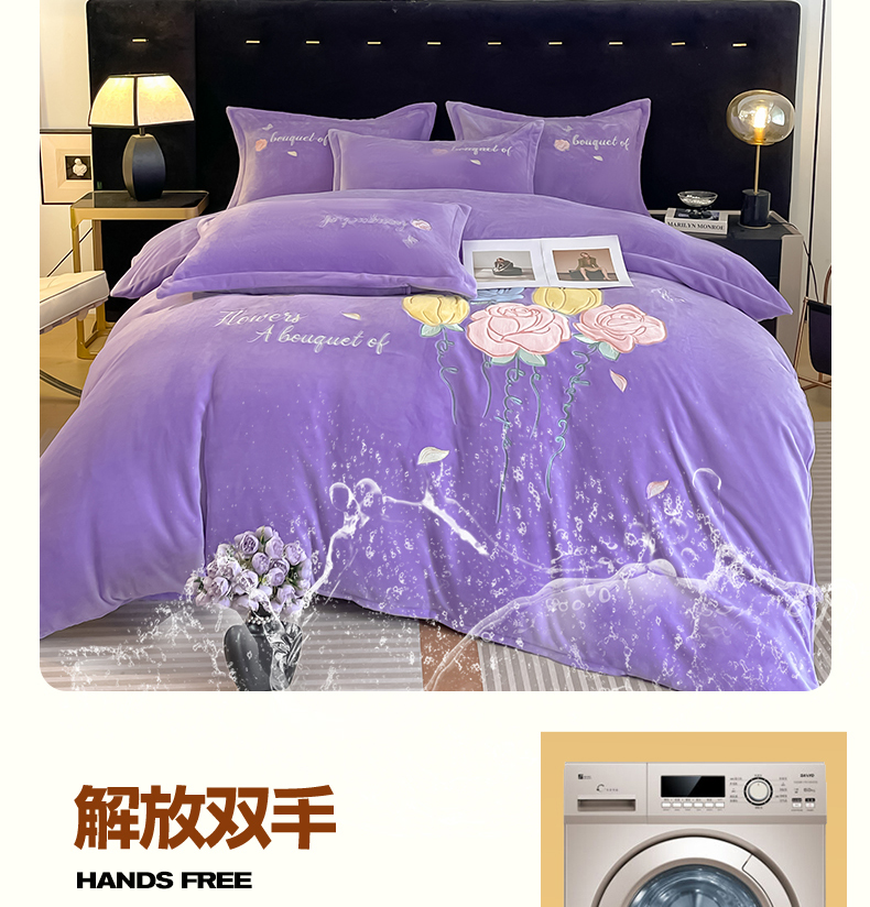 商品名称:绒小宣 2025新款A类牛奶绒贴布绣四件套-玫瑰爱恋 玫瑰爱恋-浅夏紫