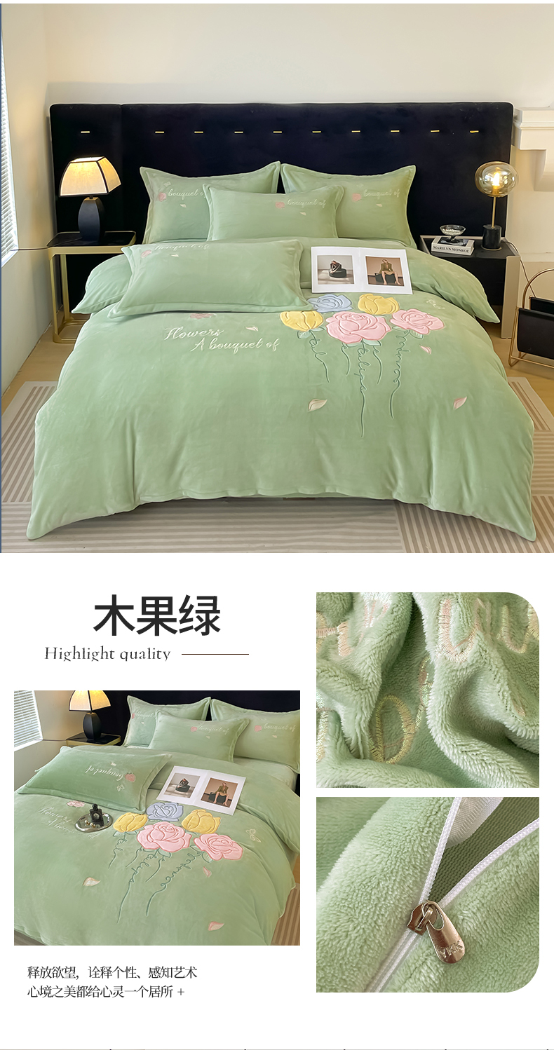 (总)绒小宣 2025新款A类牛奶绒刺绣四件套-蝶恋花,木果绿,豆沙色,帝都灰,浅夏紫,晴山蓝,芍药粉,苏打橙,天空兰,浅粉