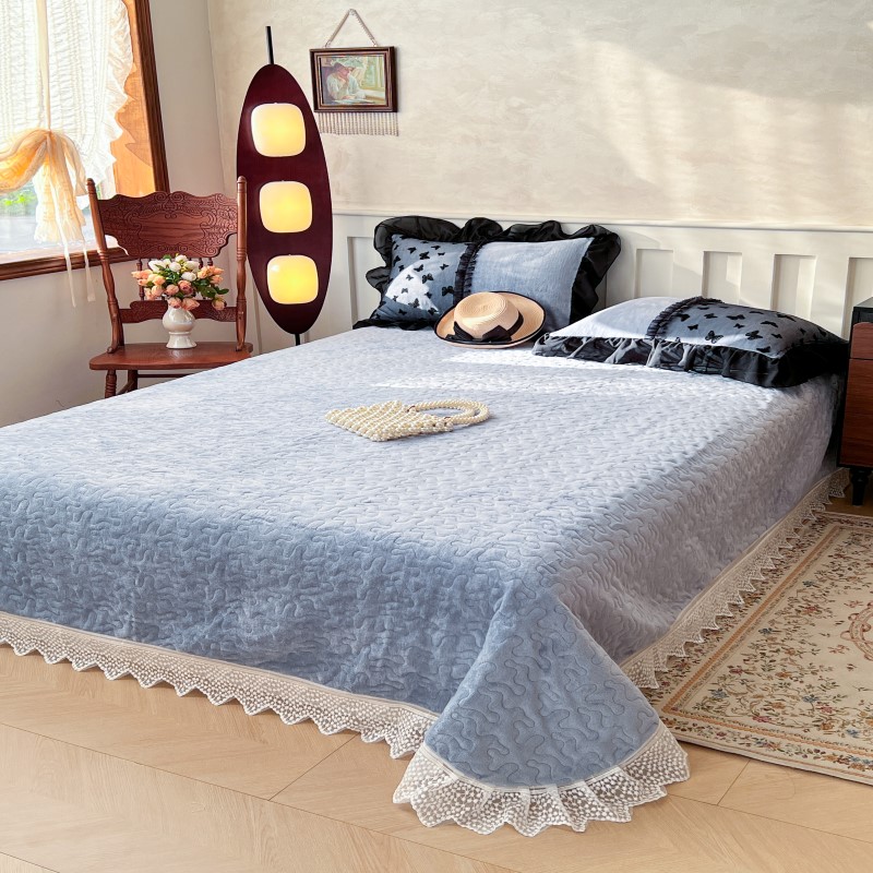 (总)韩秀家纺 2025新款加厚牛奶绒蝴蝶蕾丝床盖花边夹棉床盖三件套高克重珊瑚绒单床盖-莫奈花园,莫奈花园粉玉,莫奈花园灰,莫奈花园咖,莫奈花园米,莫奈花园青