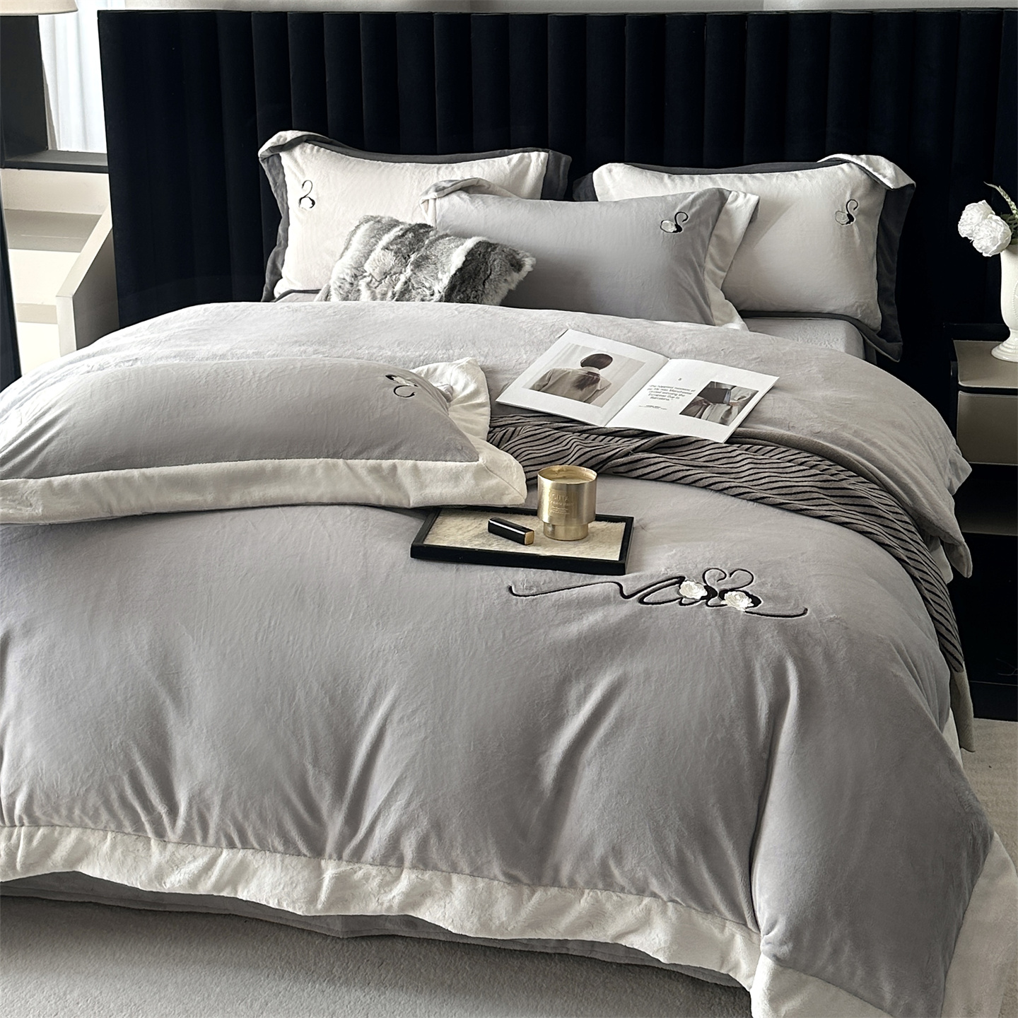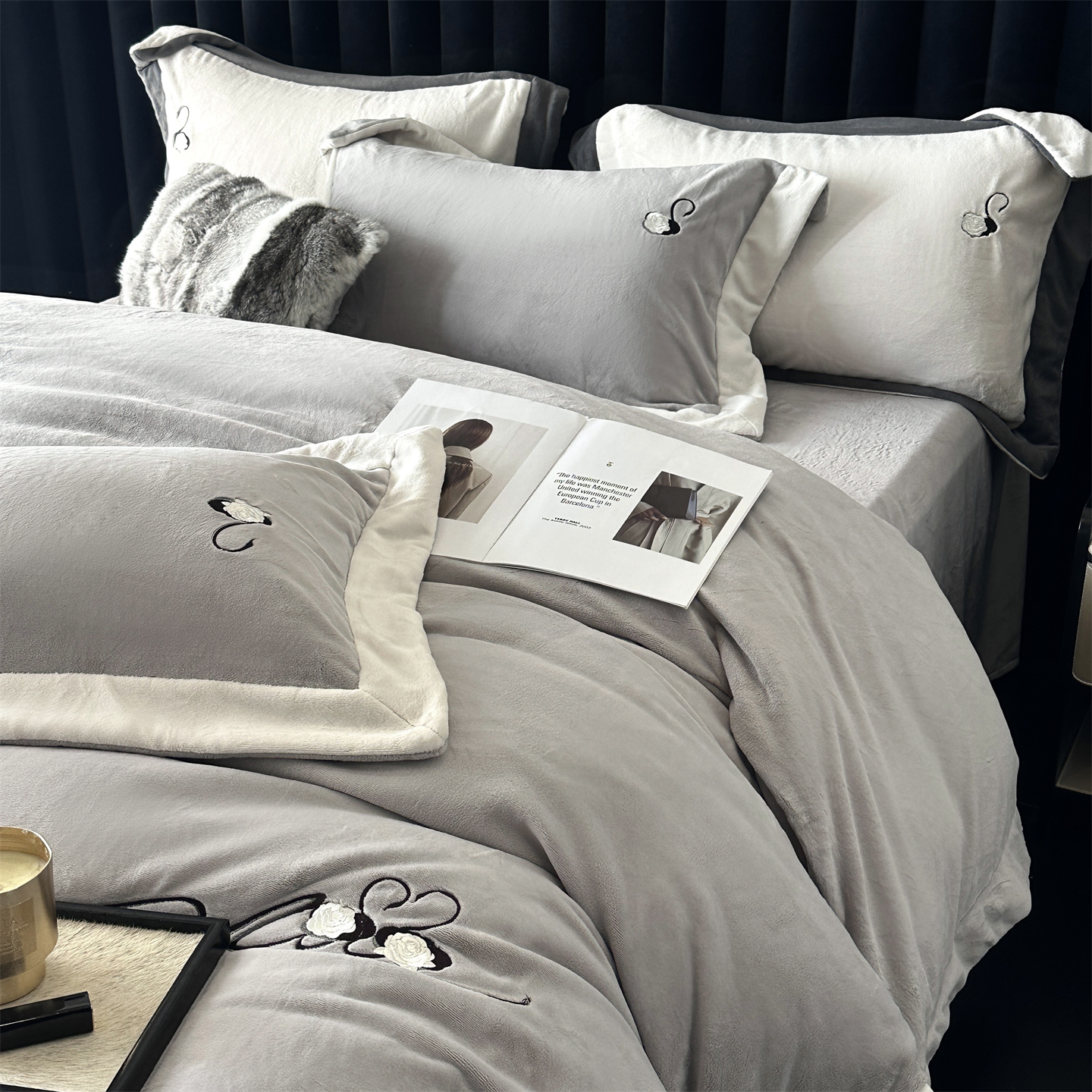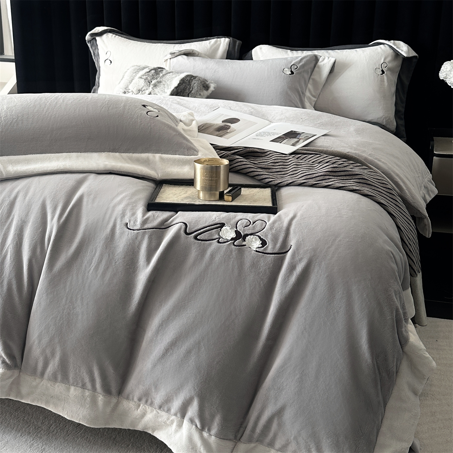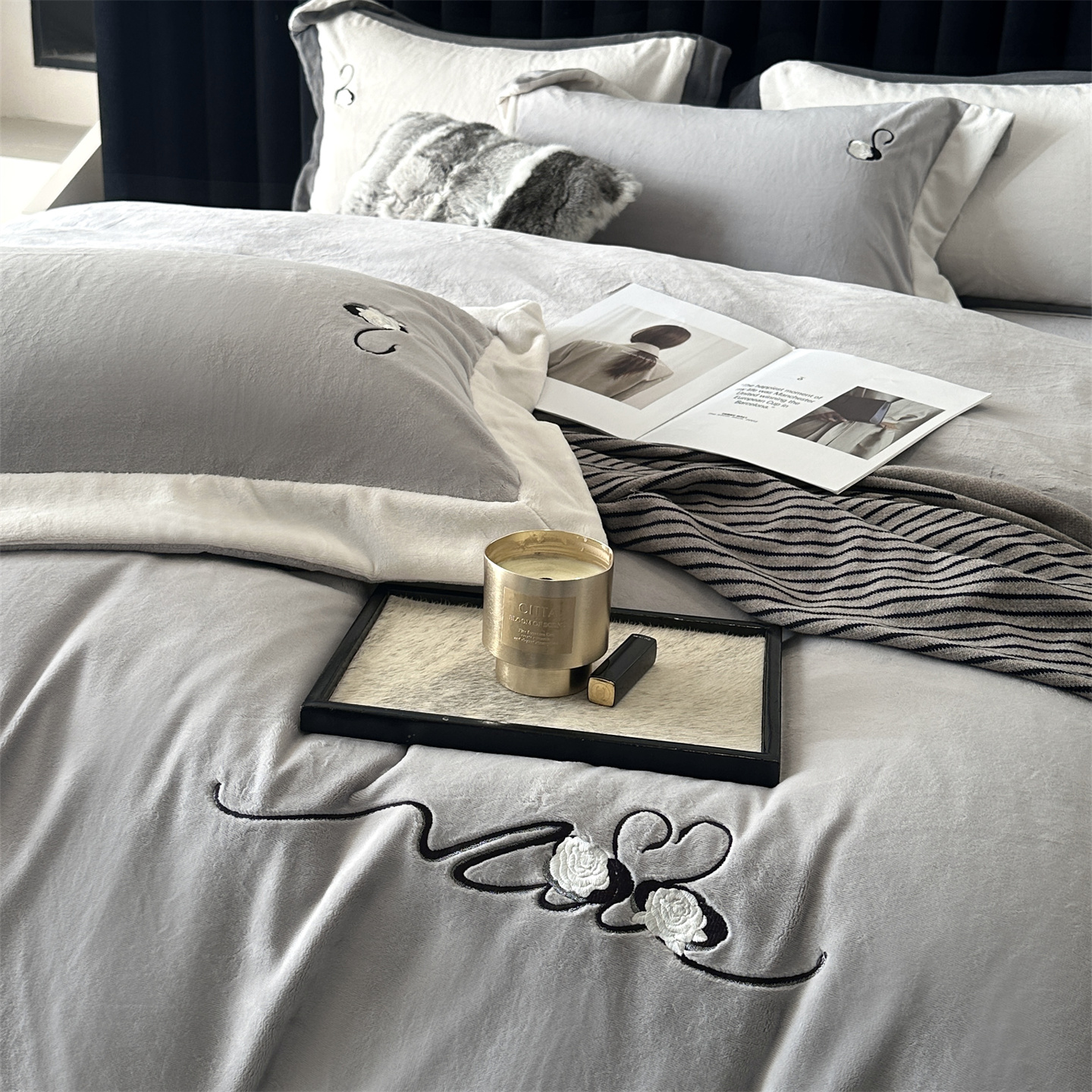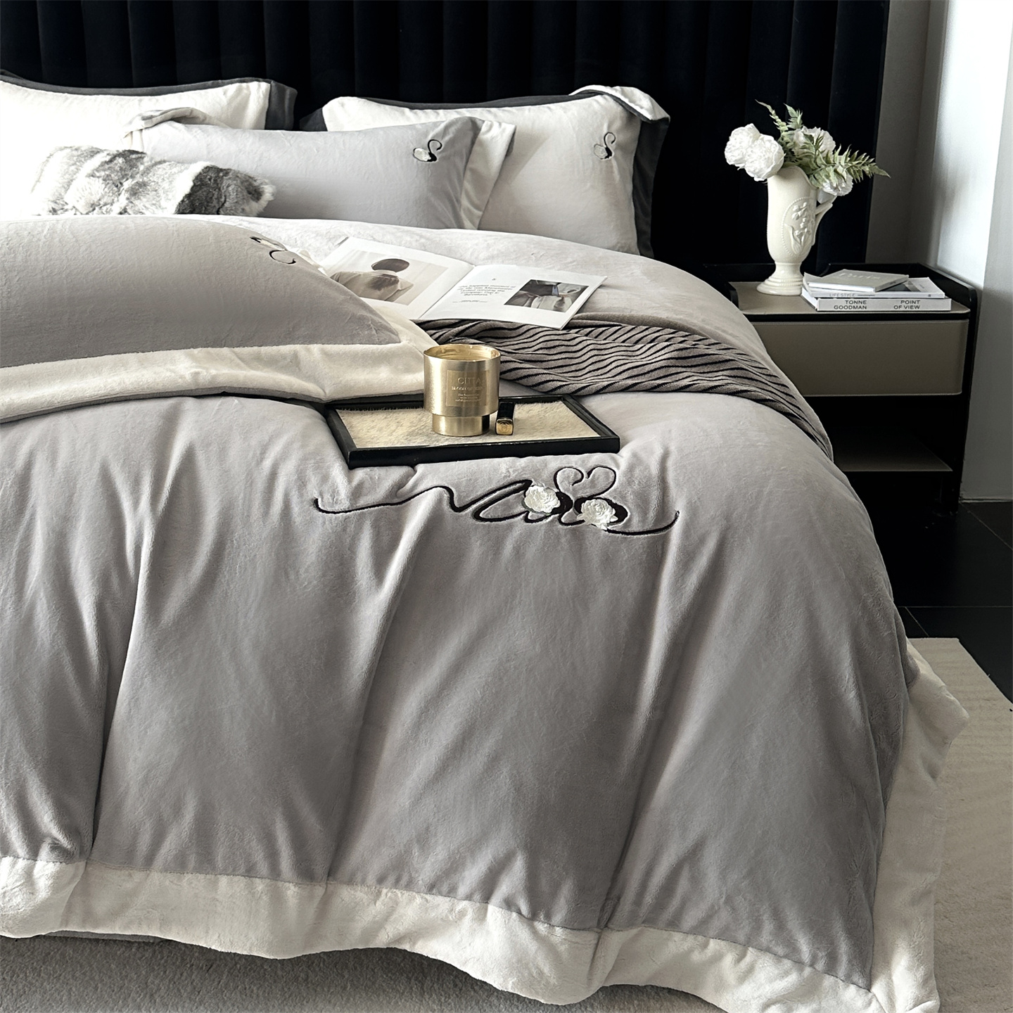 (总)南泉坊 2025新款230克全消光牛奶绒刺绣四件套,墨尔本-豆沙,墨尔本-灰,墨尔本-咖