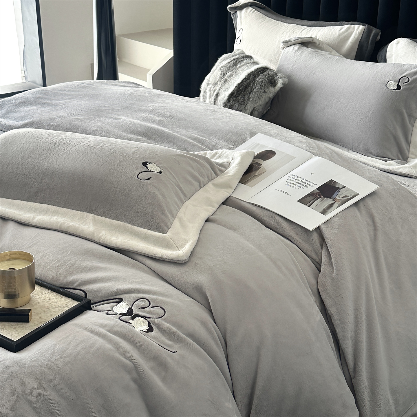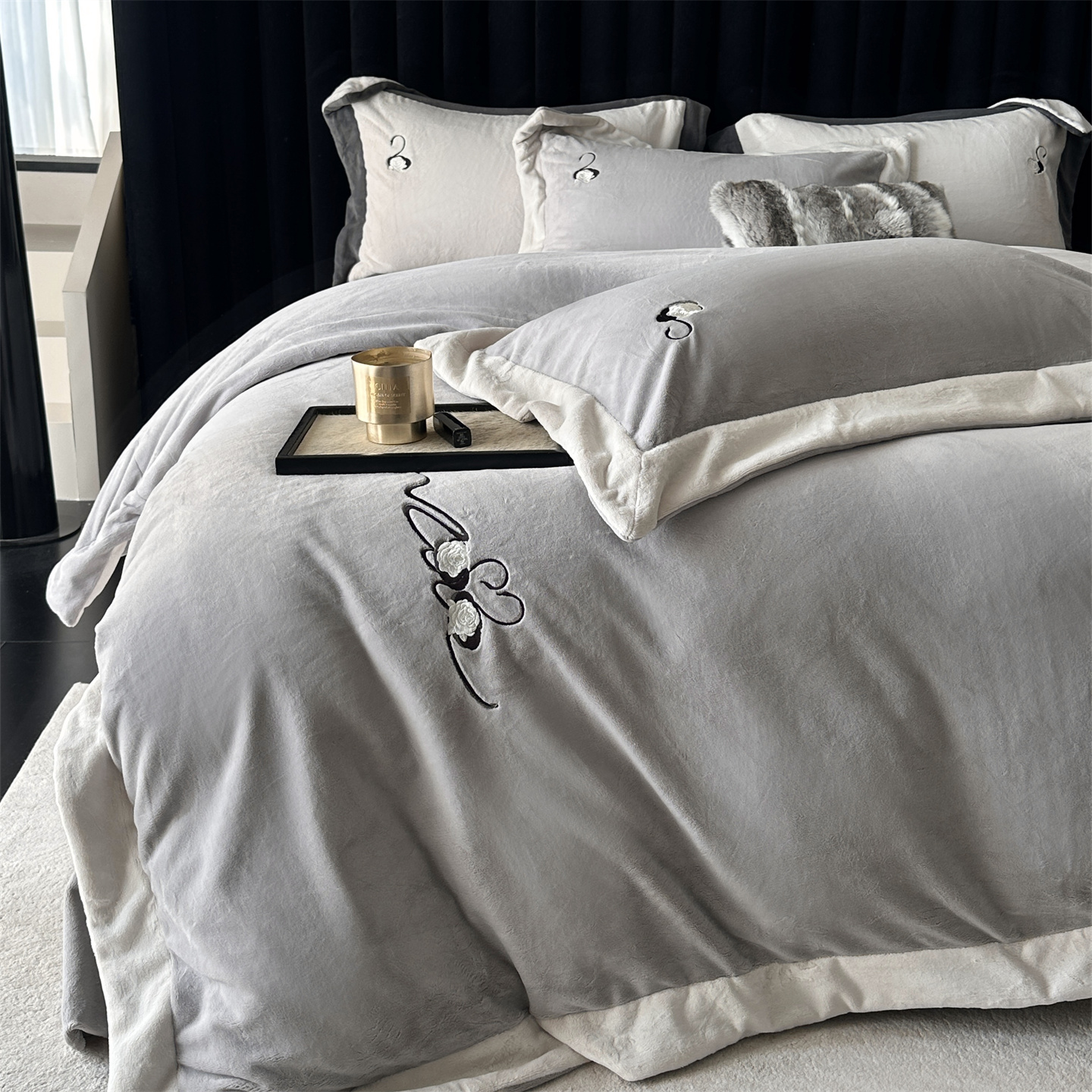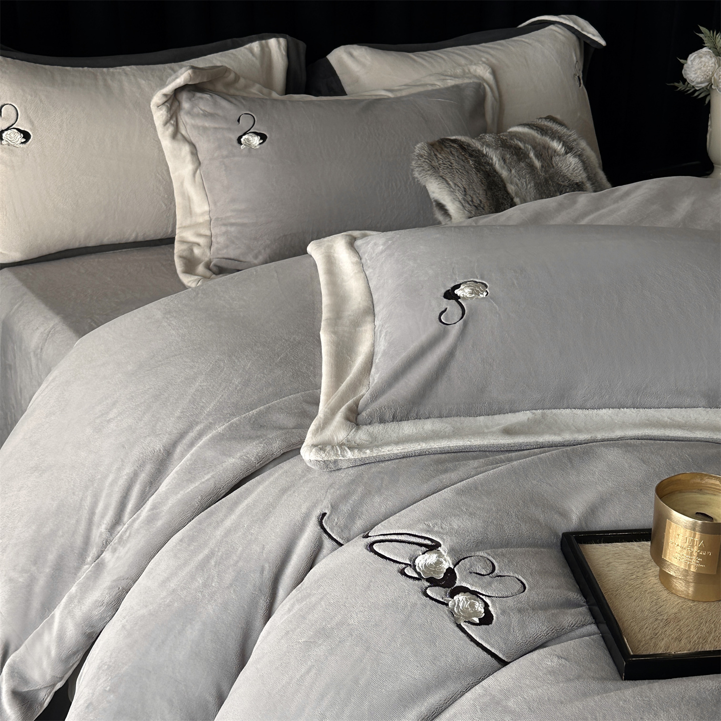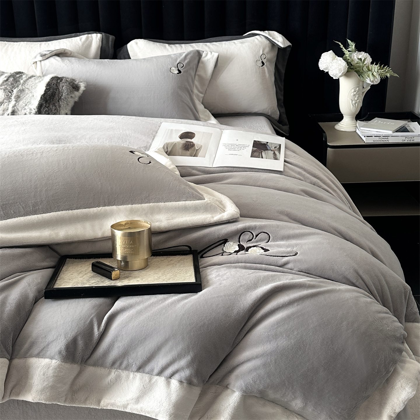 (总)南泉坊 2025新款230克全消光牛奶绒刺绣四件套,墨尔本-豆沙,墨尔本-灰,墨尔本-咖