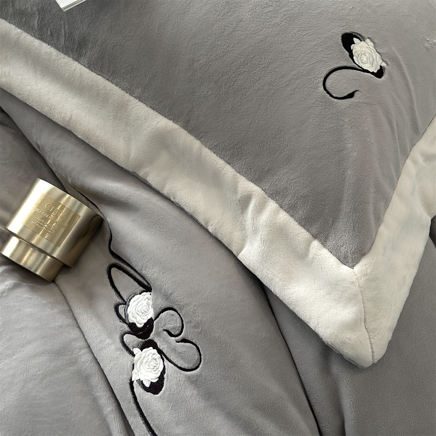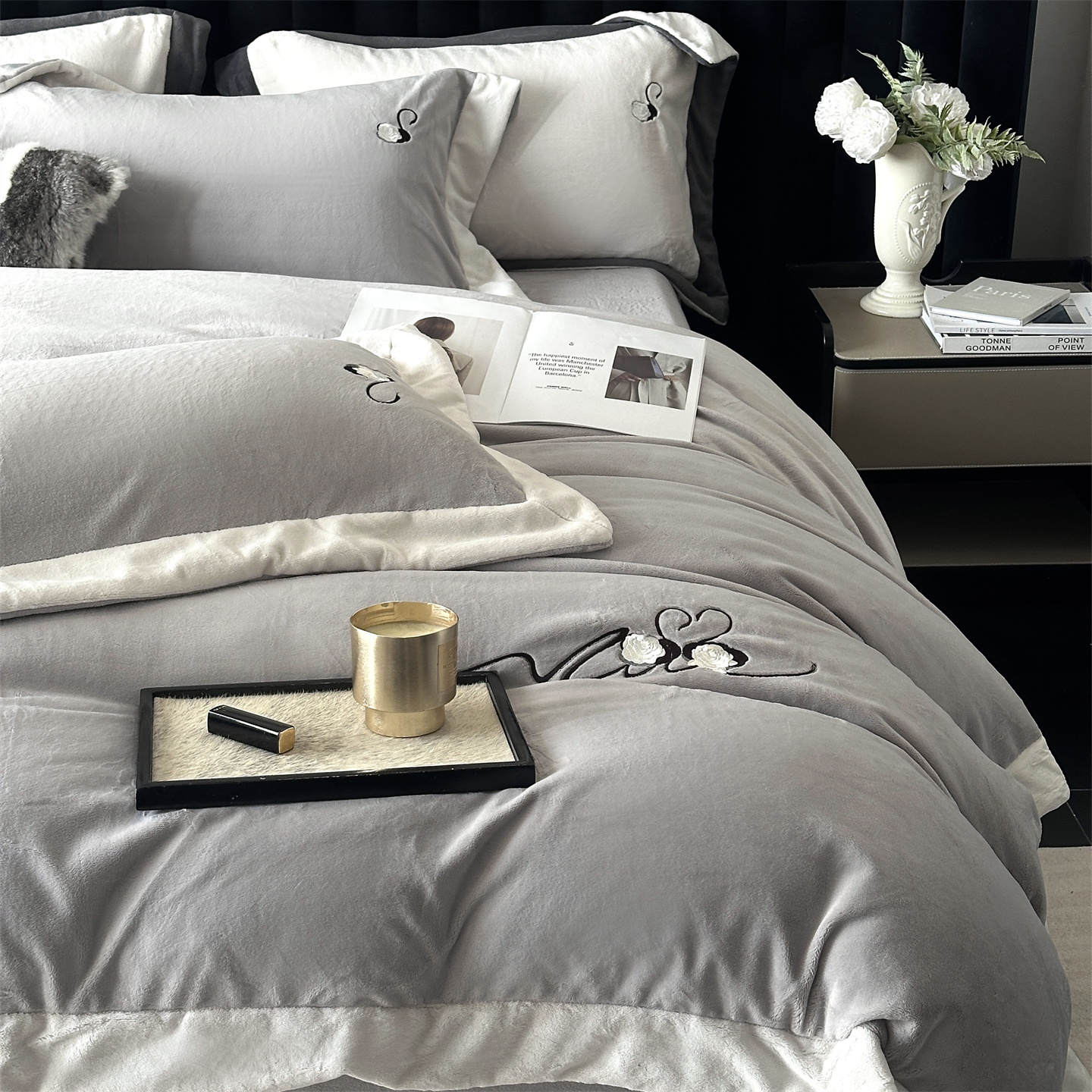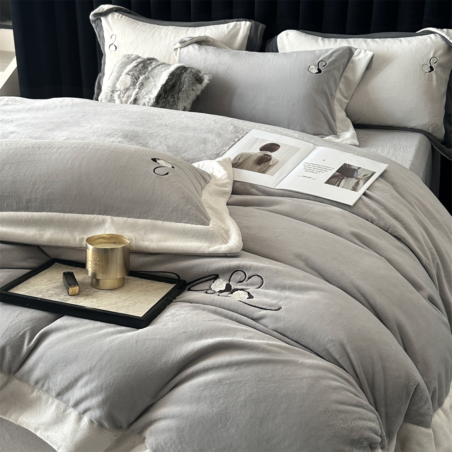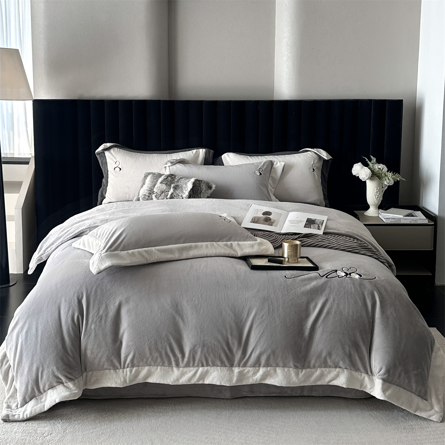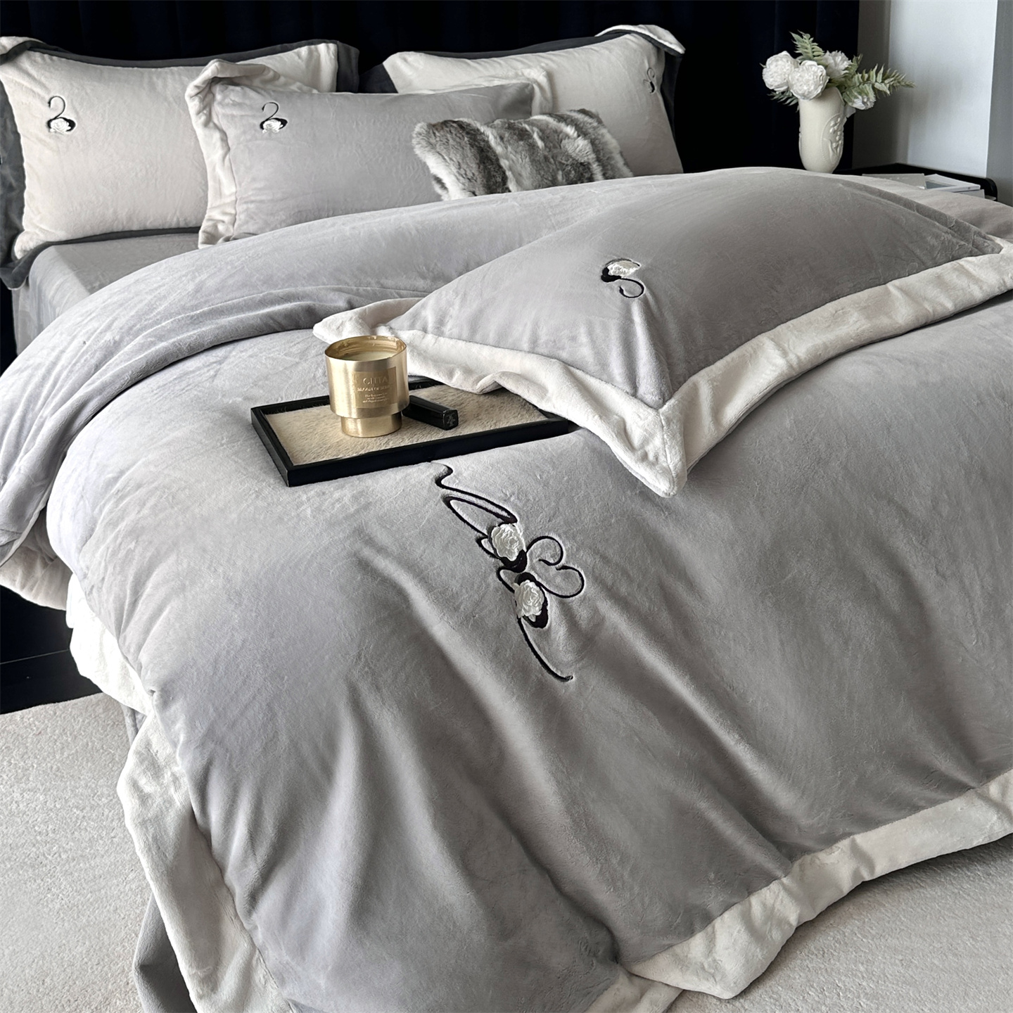 (总)南泉坊 2025新款230克全消光牛奶绒刺绣四件套,墨尔本-豆沙,墨尔本-灰,墨尔本-咖